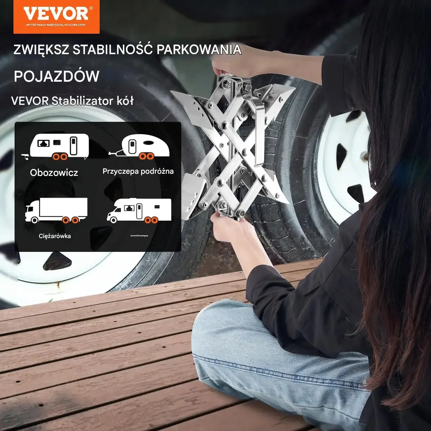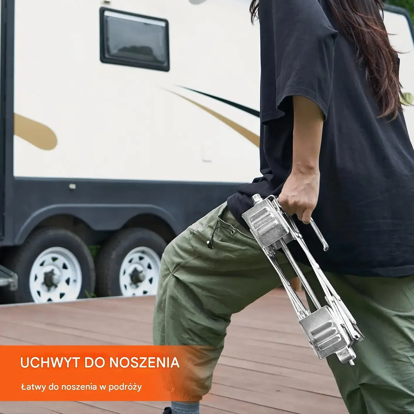 - ⭐ Zabezpieczenie przyczepy kempingowej: Skutecznie blokuje koła przyczepy, zwiększając bezpieczeństwo.