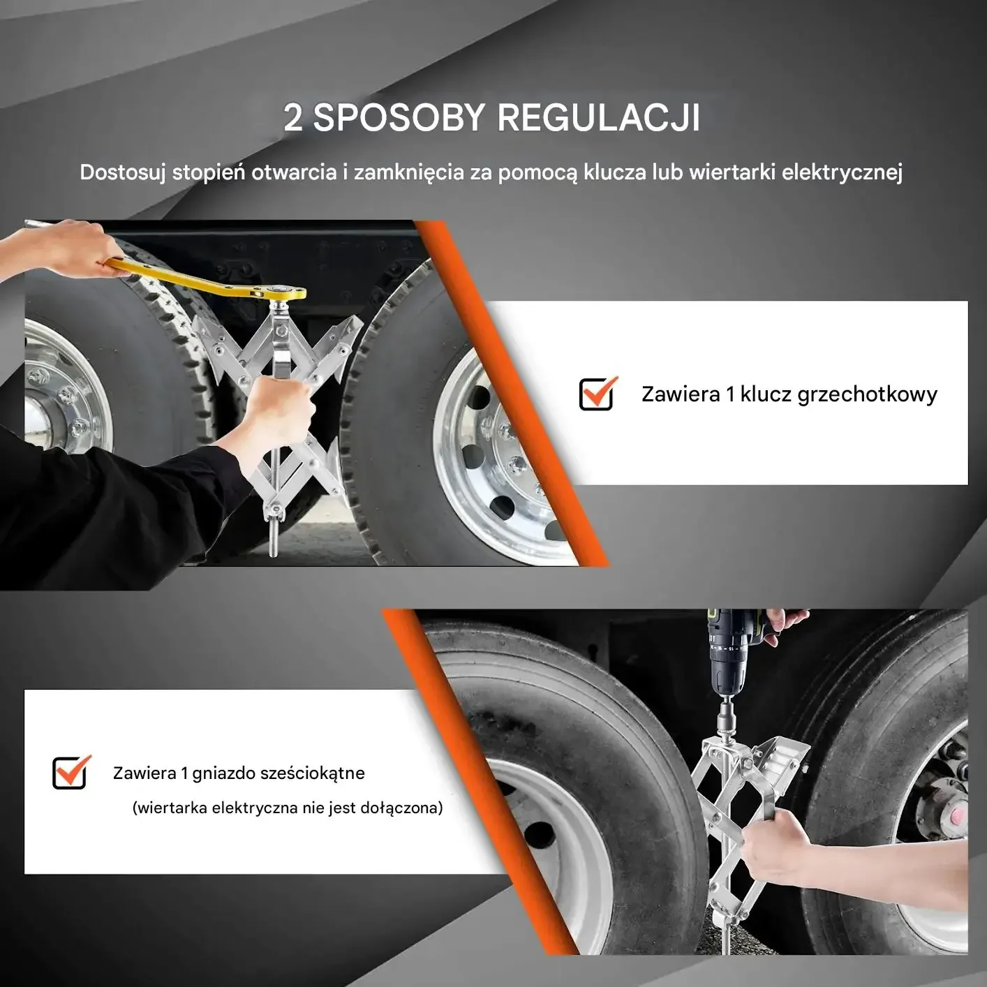 - ⭐ Stabilizacja ciężarówek: Idealny do zabezpieczania ciężarówek na postojach, szczególnie na nierównym terenie.