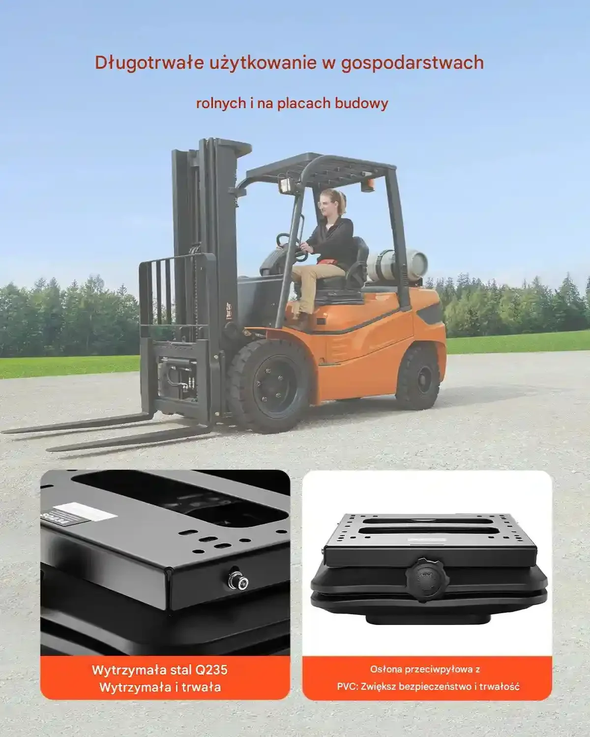 - ✅ Szeroka kompatybilność: 8 dodatkowych otworów montażowych – pasuje do wózków widłowych, traktorów, kosiarek i buldożerów