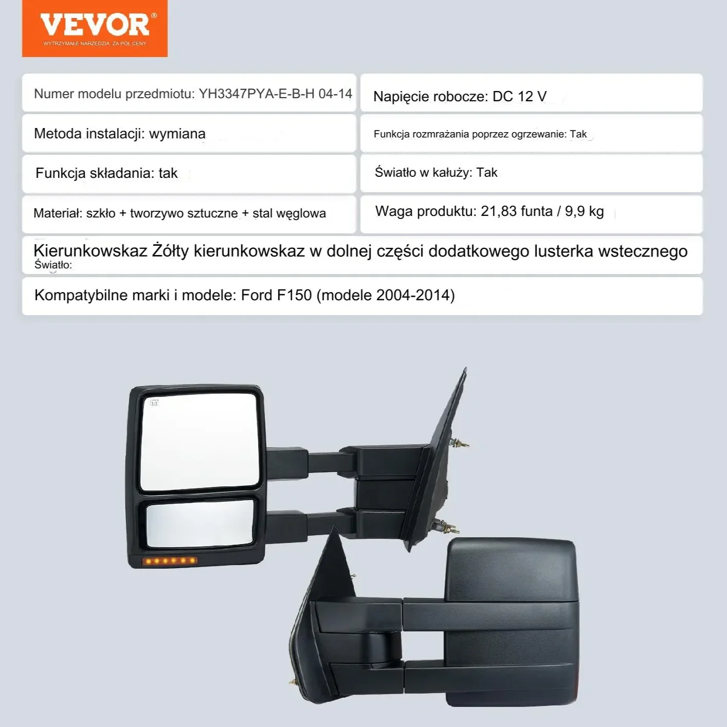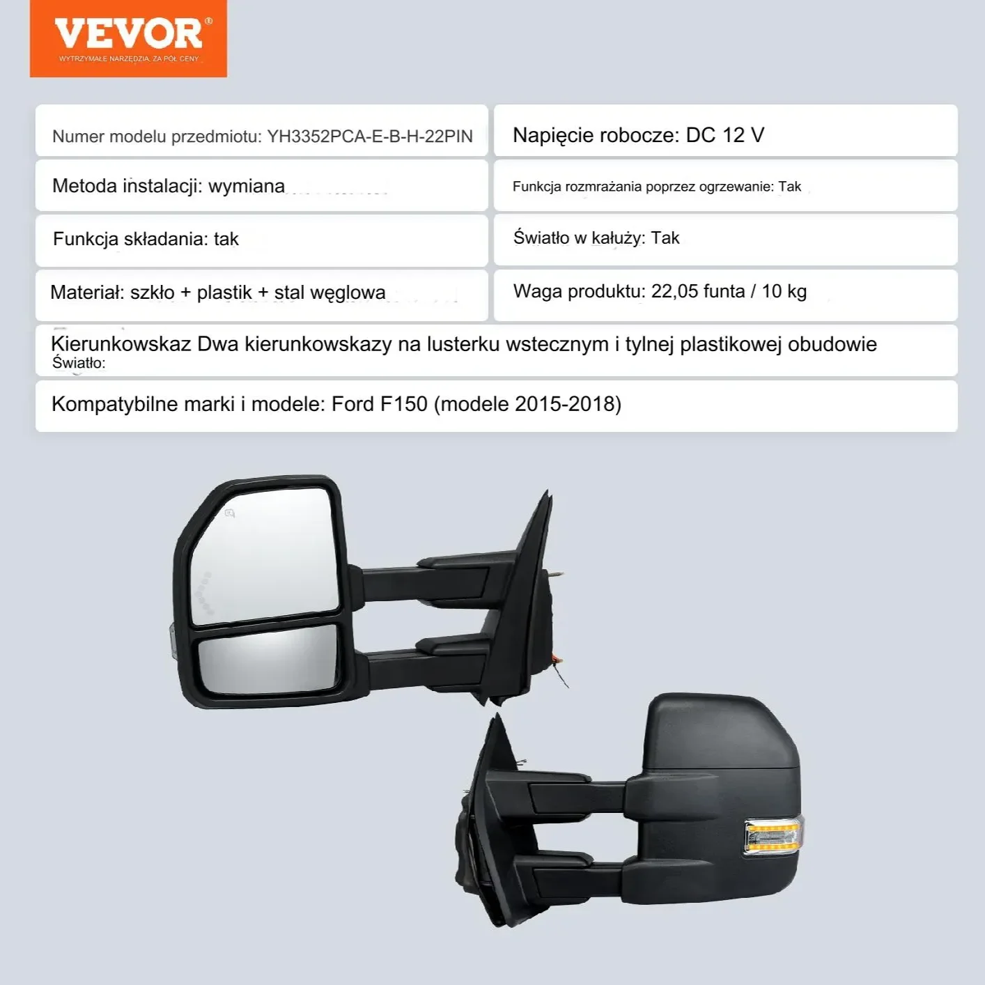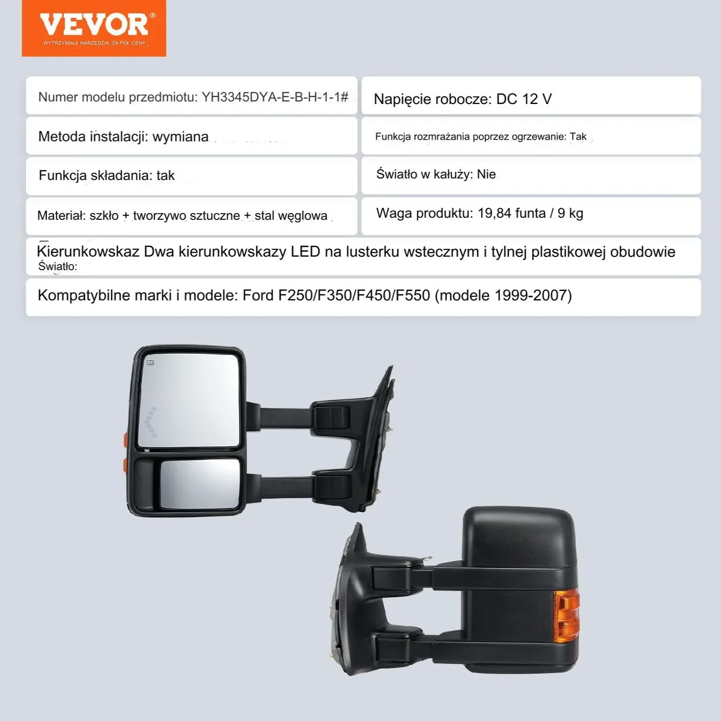 Te lusterka do samochodów ciężarowych zostały zaprojektowane z funkcją ręcznego składania teleskopowego, dzięki czemu ich przechowywanie jest dziecinnie proste i ułatwia przejście przez wąskie przestrzenie. Funkcja podgrzewania zapewnia szybkie usuwanie szronu lub mgły, zapewniając krystalicznie czyste widzenie, nawet w deszczowe i śnieżne dni.