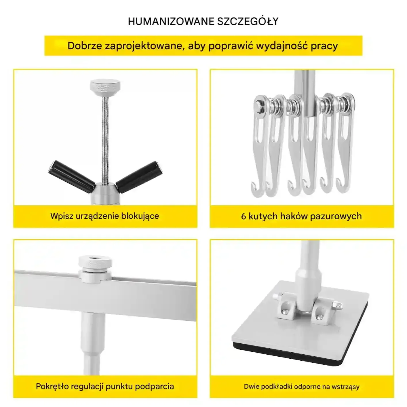- ✅ Precyzyjny uchwyt śrubowy: Umożliwia płynne podnoszenie i opuszczanie drążka za pomocą pokrętła, zapewniając stabilną i kontrolowaną pracę przy naprawie wgnieceń.