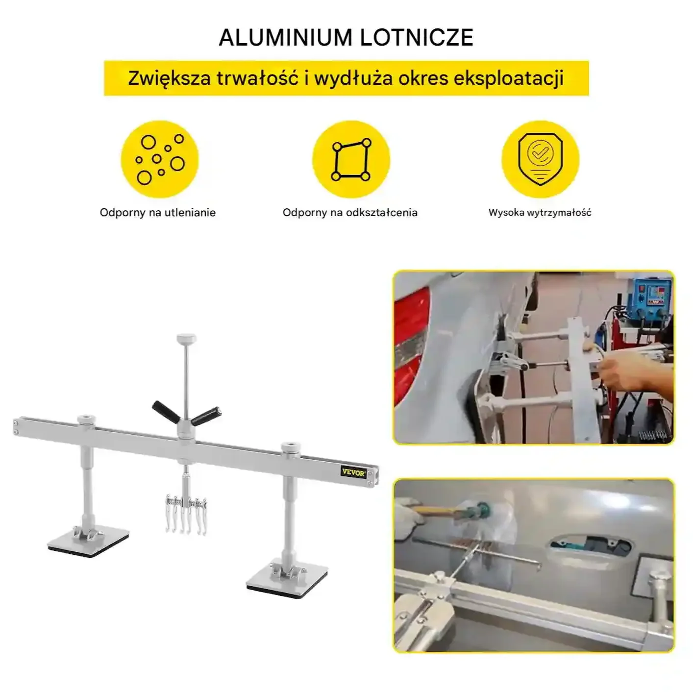 - Zastosowanie: Naprawa wgnieceń w aluminium i stali