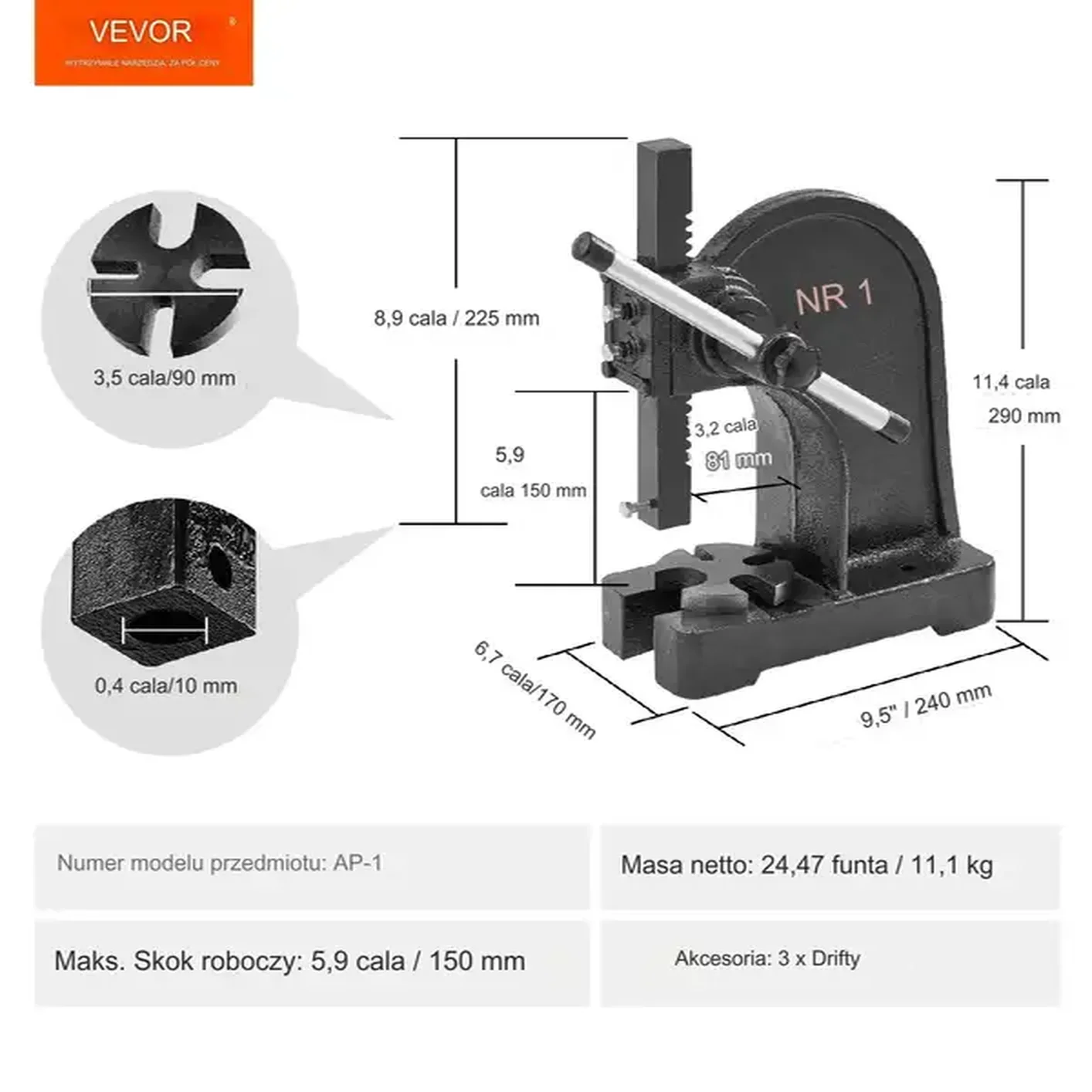 ✅ Solidna konstrukcja – wykonana z żeliwa, z powłoką antykorozyjną i polerowanym kowadłem