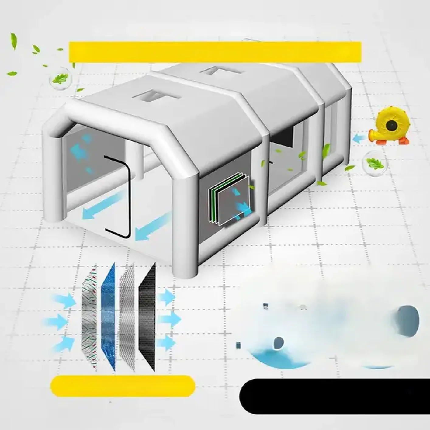 Namiot lakierniczy Nadmuchiwany Kabina lakiernicza samochodowa 9x6x4m+ dmuchawy