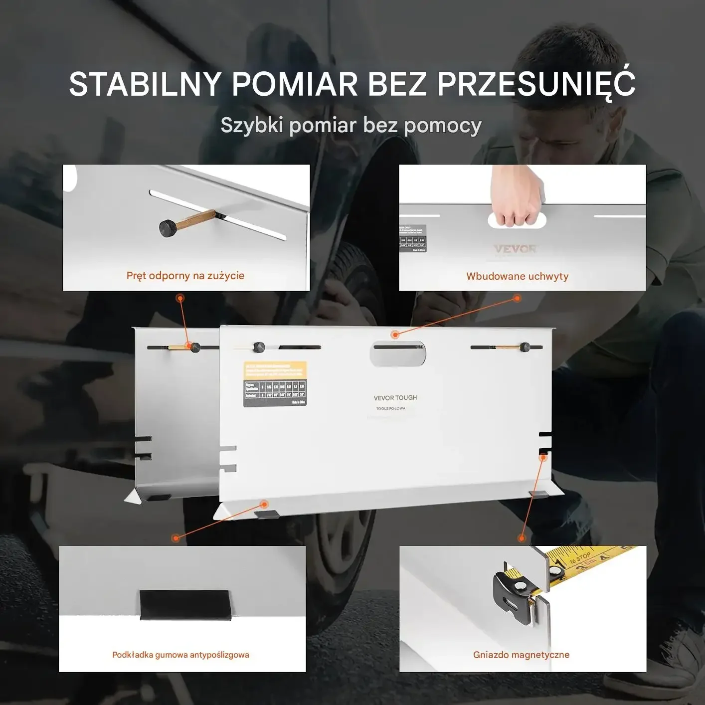 - ✅ Magnetyczne gniazda: Specjalne magnetyczne gniazda stabilnie utrzymują głowicę taśmy mierniczej, zapobiegając jej przesuwaniu się, co umożliwia łatwą obsługę jednoosobową.