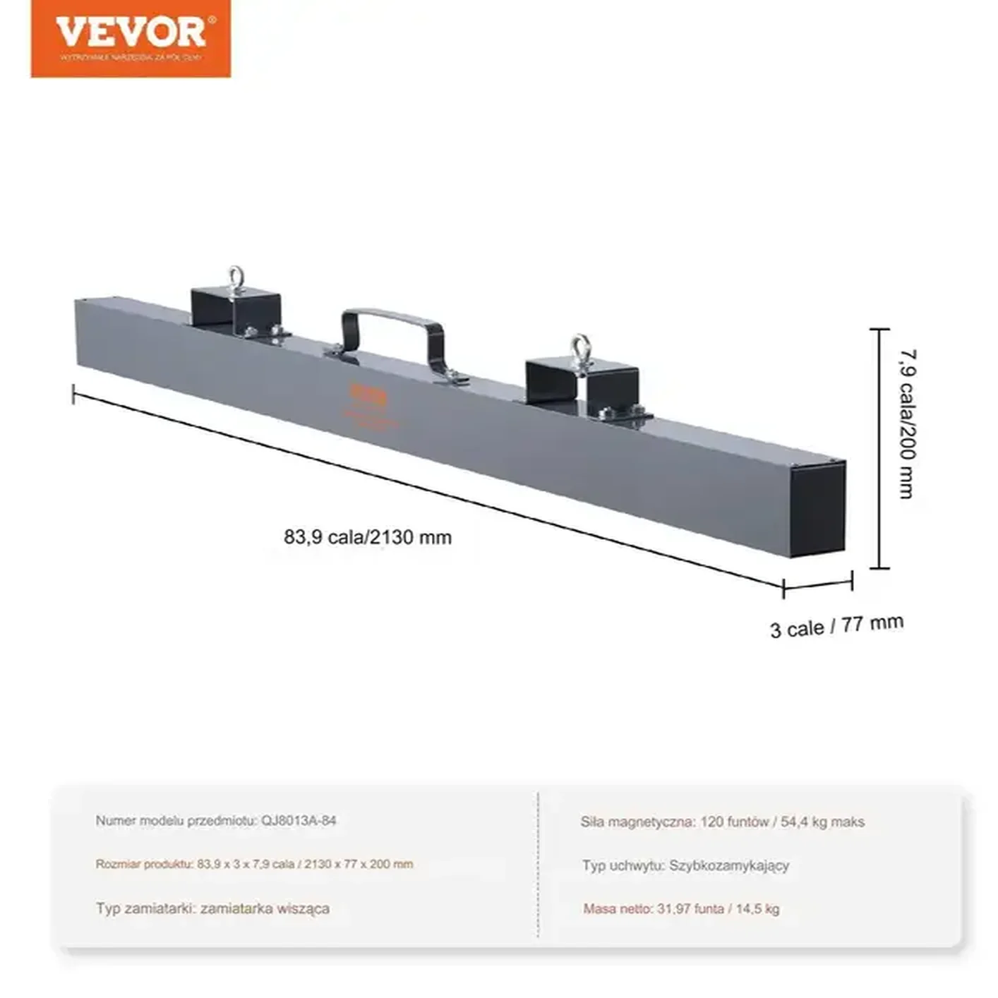 Miotła magnetyczna zamiatarka o długości 213 cm to nowoczesne narzędzie stworzone z myślą o maksymalnej wydajności i bezpieczeństwie pracy. ✅ Solidna aluminiowa obudowa oraz trwałe stalowe uchwyty gwarantują długą żywotność nawet w najtrudniejszych warunkach przemysłowych. ✅