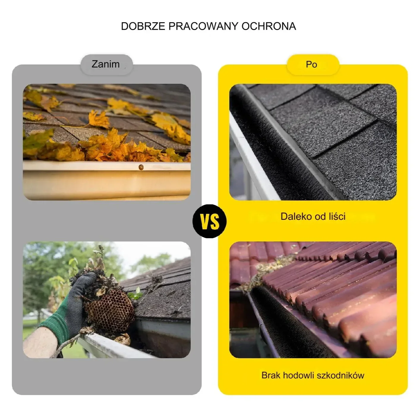 - ⭐ Zapobieganie zatykaniu rynien liśćmi i innymi zanieczyszczeniami