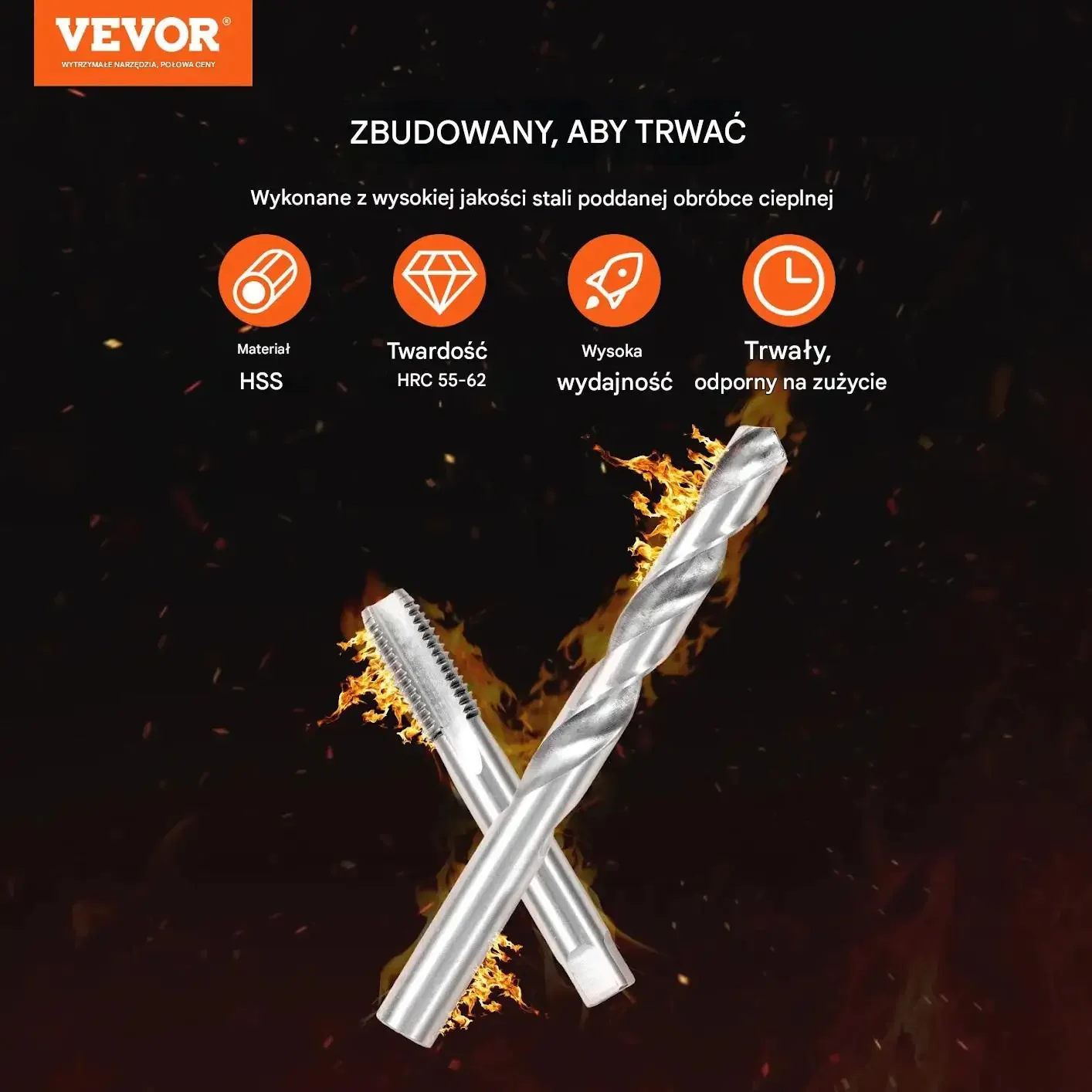 • Główne materiały: stal szybkotnąca HSS (wiertła), stal łożyskowa (gwintowniki), stal węglowa (narzędzia), stal nierdzewna 304 (wkładki gwintowe)