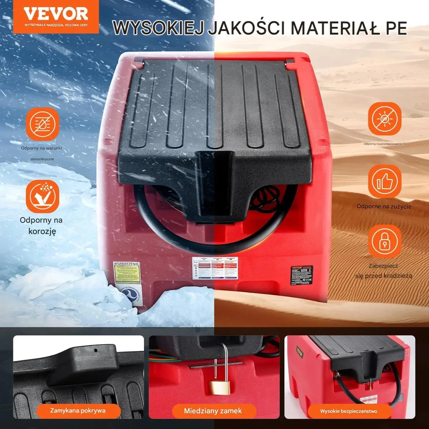 - ✅ Solidna konstrukcja zbiornika: Wykonany z wysokiej jakości polietylenu, odporny na zmienne warunki pogodowe i promieniowanie UV, z zamykaną pokrywą na kłódkę miedzianą dla ochrony przed kradzieżą