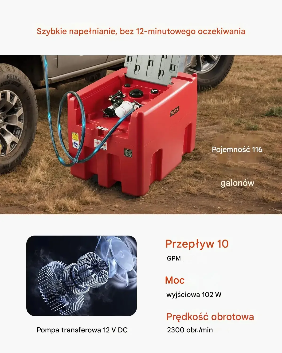 Zbiornik paliwa 440L z pompą 12V dystrybutor mobilny do diesla