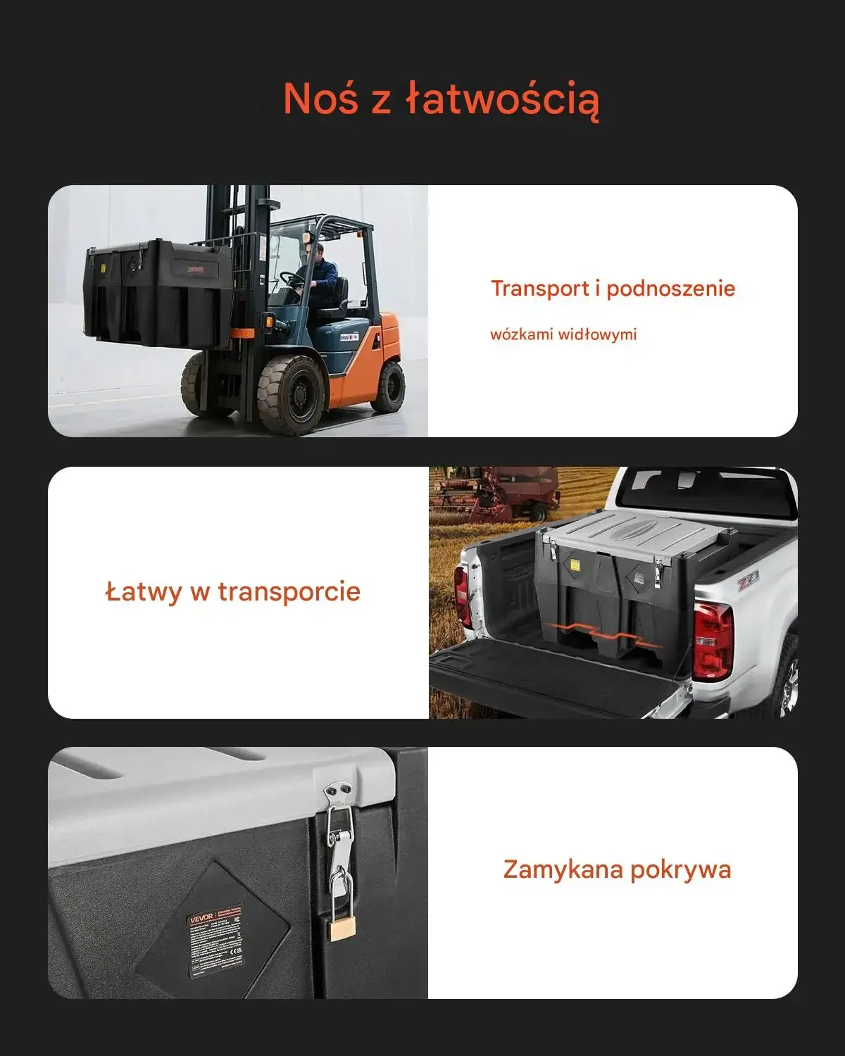 - ✅ Łatwy transport i stabilne przenoszenie: 2 rowki ułatwiające manewrowanie oraz kieszenie do wózka widłowego dla bezpiecznego podnoszenia