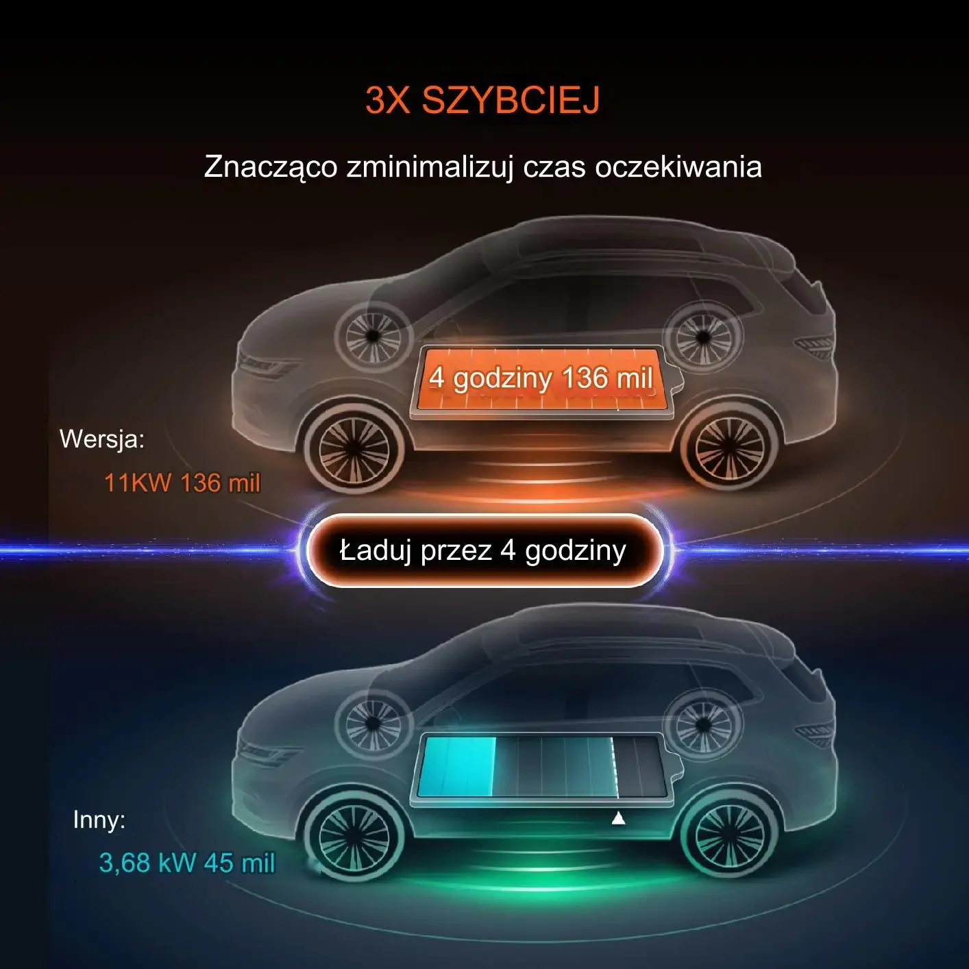 - ➡️ Szybkość – do 11 kW dla efektywnego ładowania.