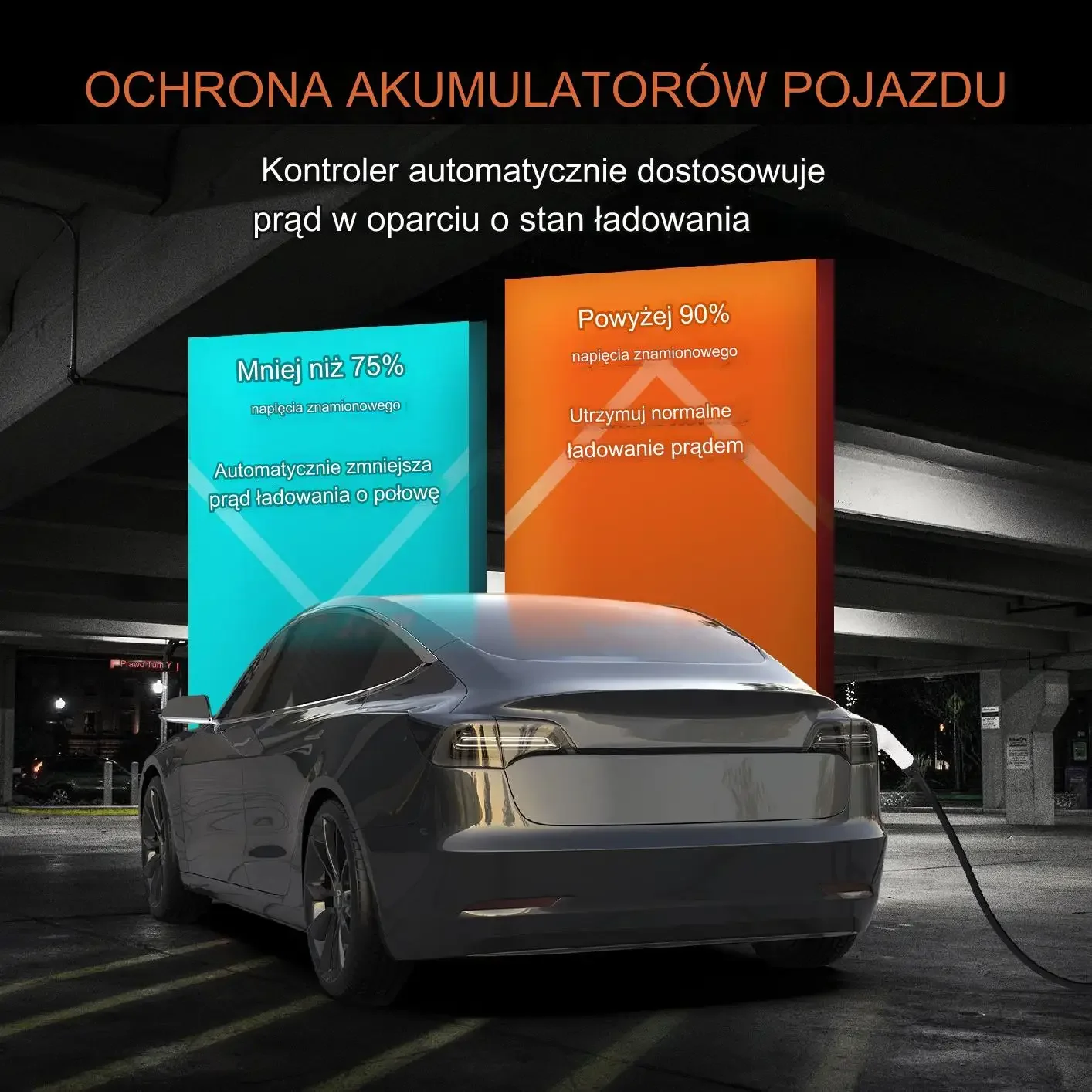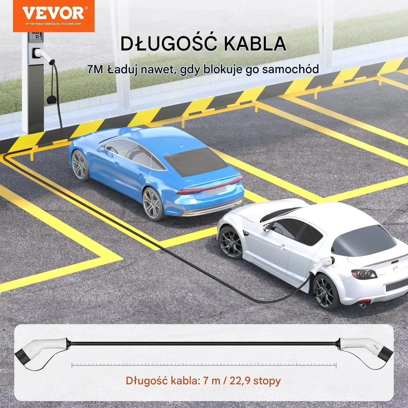 - ✅ Kabel 7,5 m – elastyczność ładowania w domu i na stacjach publicznych.