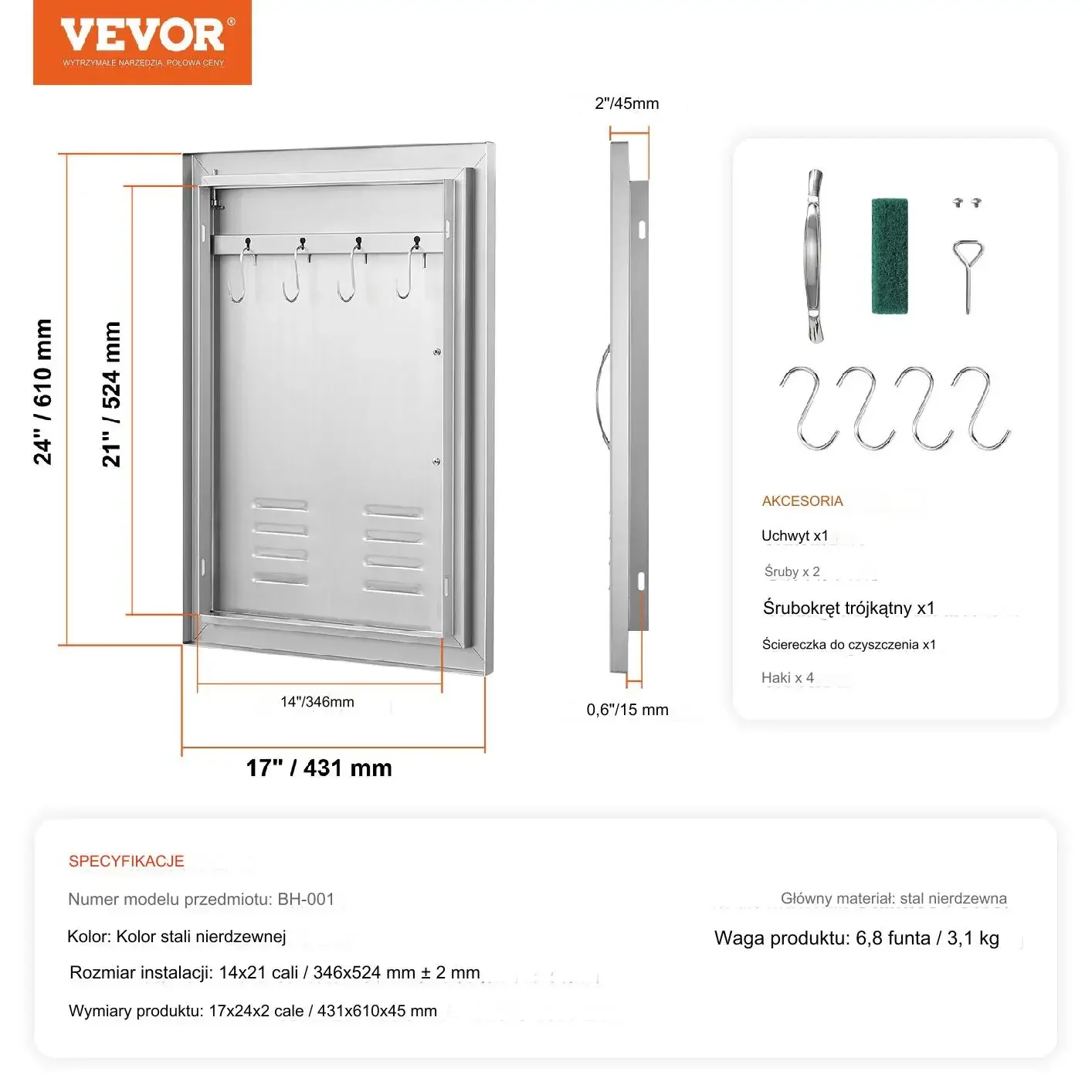 • • Wymiary: 200 × 550 mm