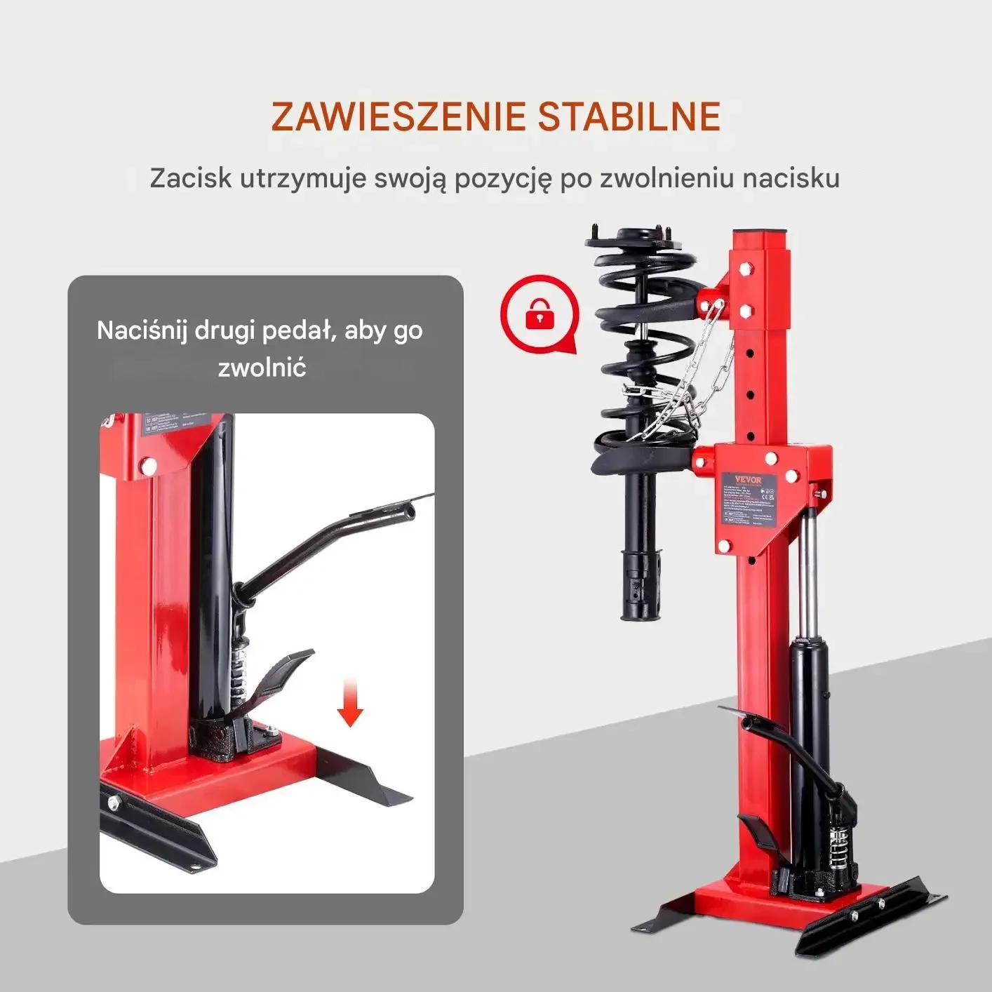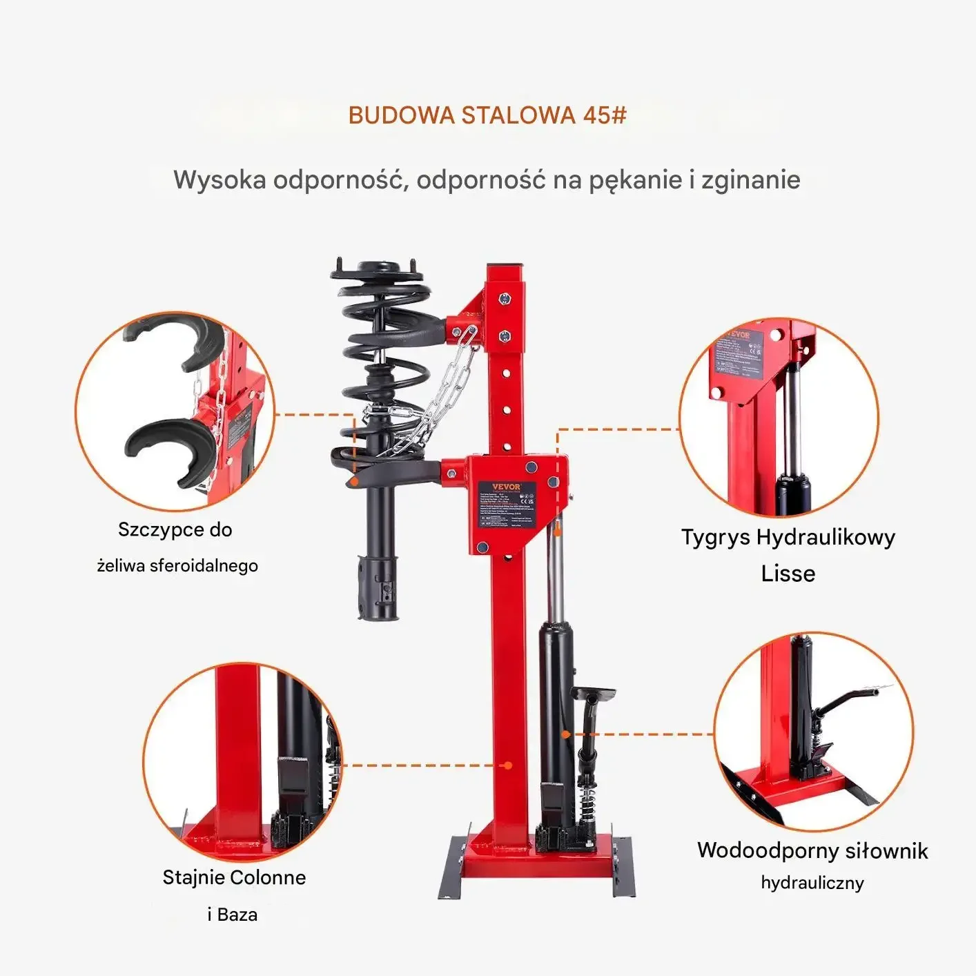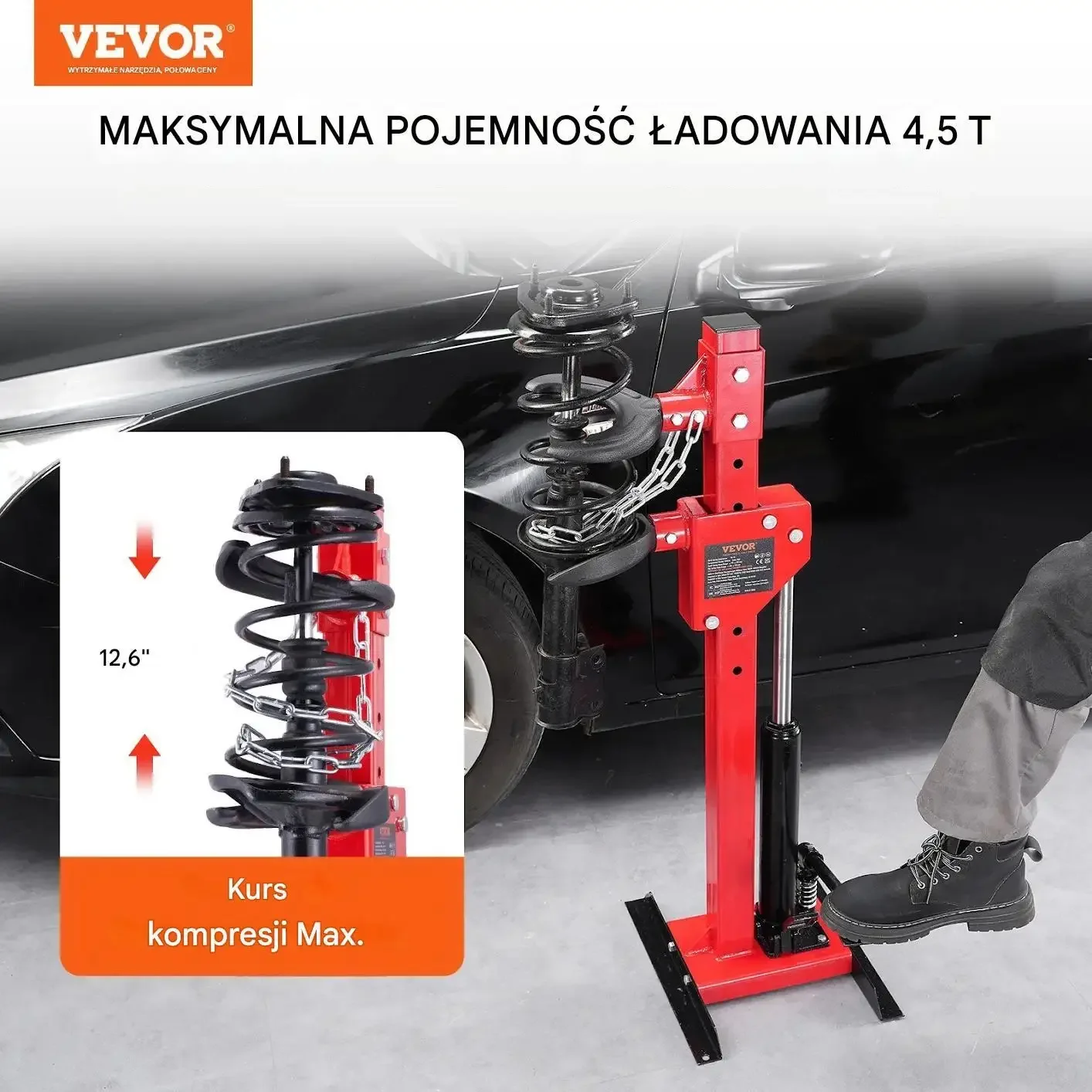 - ✅ Udźwig podnośnika hydraulicznego 4,5 t: bezproblemowa obsługa twardych i mocno napiętych sprężyn