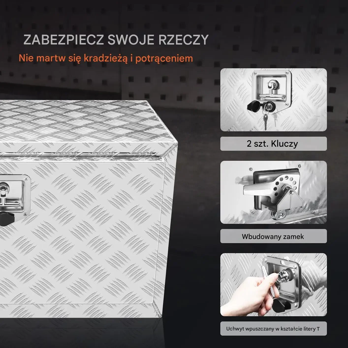 Idealne rozwiązanie do przechowywania narzędzi i sprzętu pod pojazdem, przyczepą lub na samochodzie typu pickup. Odporna na warunki atmosferyczne, łatwa w montażu i zapewniająca pełną ochronę przed kradzieżą.
