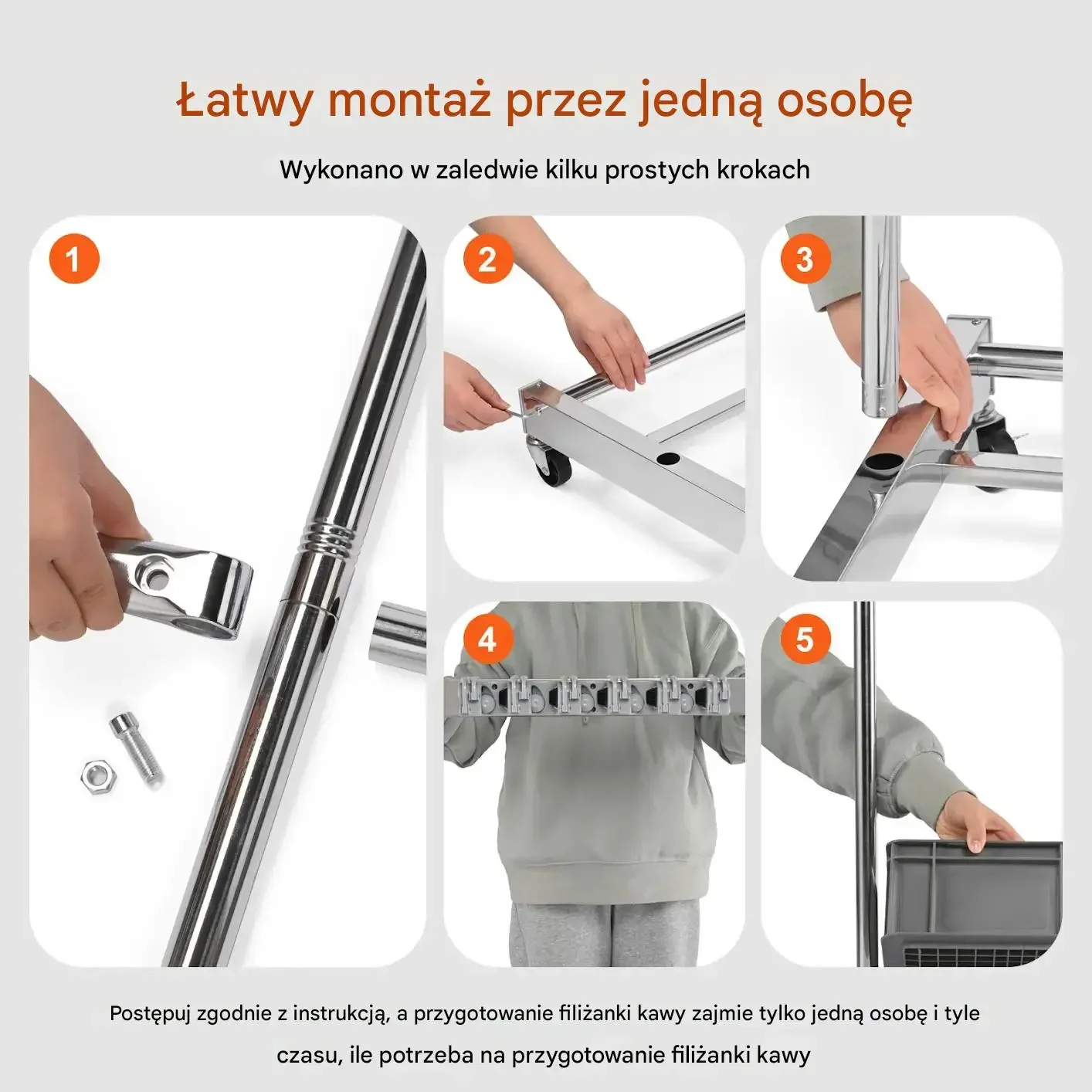 - Przemyślana konstrukcja: Regulowane stopy i blokowane kółka zapewniają stabilność na różnych nawierzchniach.