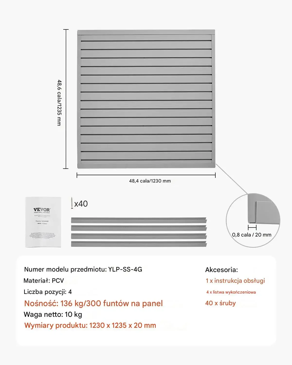 Kompleksowe rozwiązanie do przechowywania. Mieści 10 narzędzi z długim uchwytem, posiada 10 slotów na stojaki oraz 24 stałe haki.