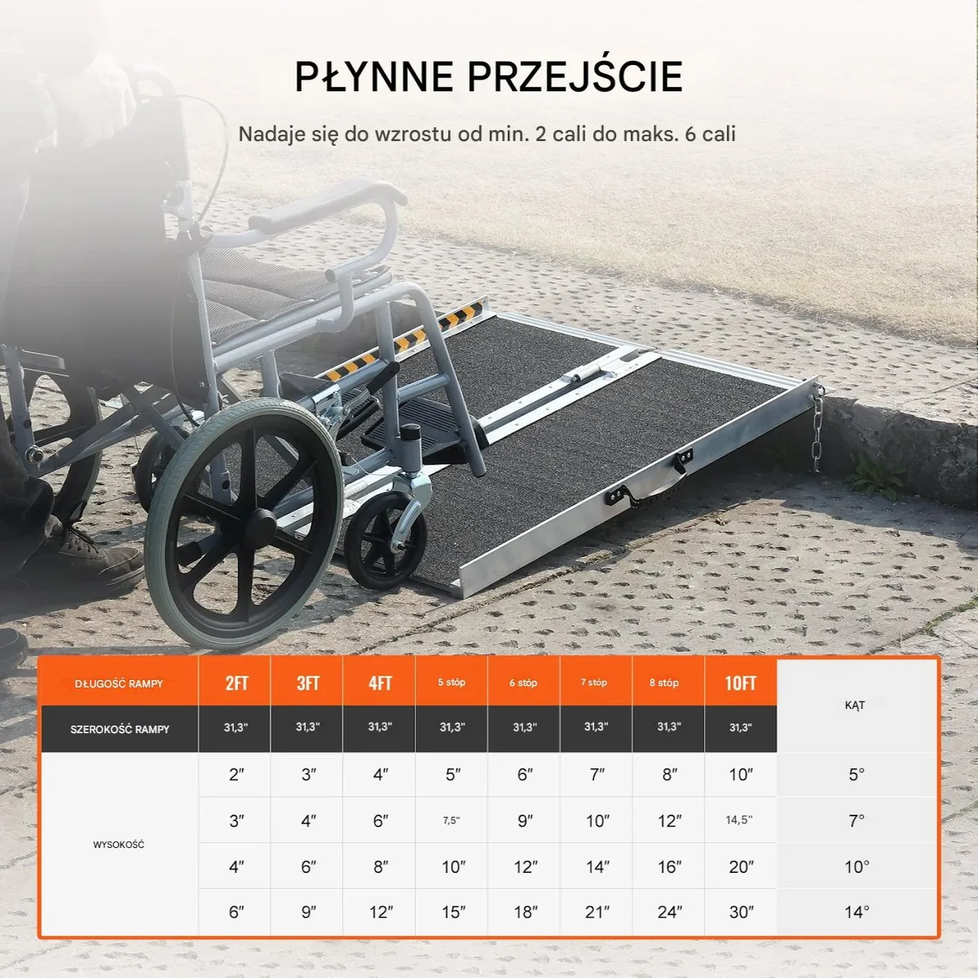 Przenośna Aluminiowa Rampa Najazd dla Wózków Inwalidzkich – 304 cm
