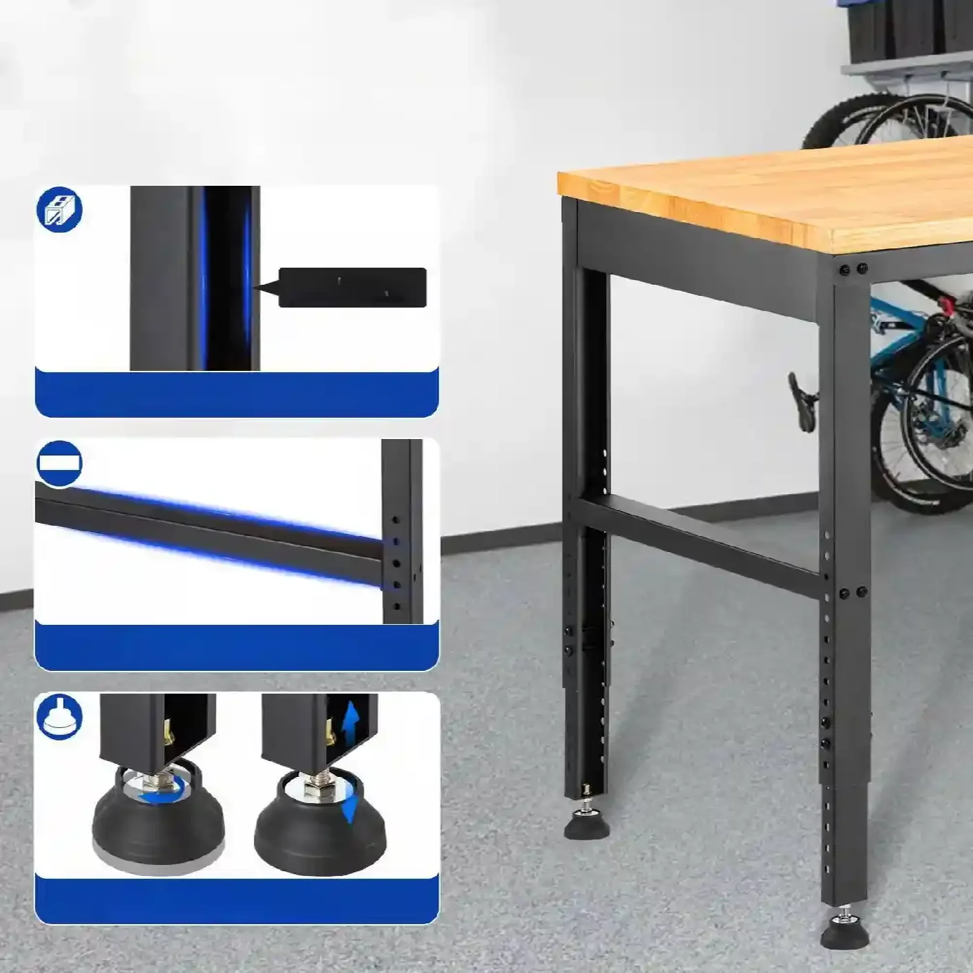 - ✅ Wszechstronne zastosowanie: Idealnie nadaje się do warsztatów, garaży, pracowni, magazynów, laboratoriów i innych miejsc, gdzie potrzebne jest solidne i regulowane stanowisko pracy.