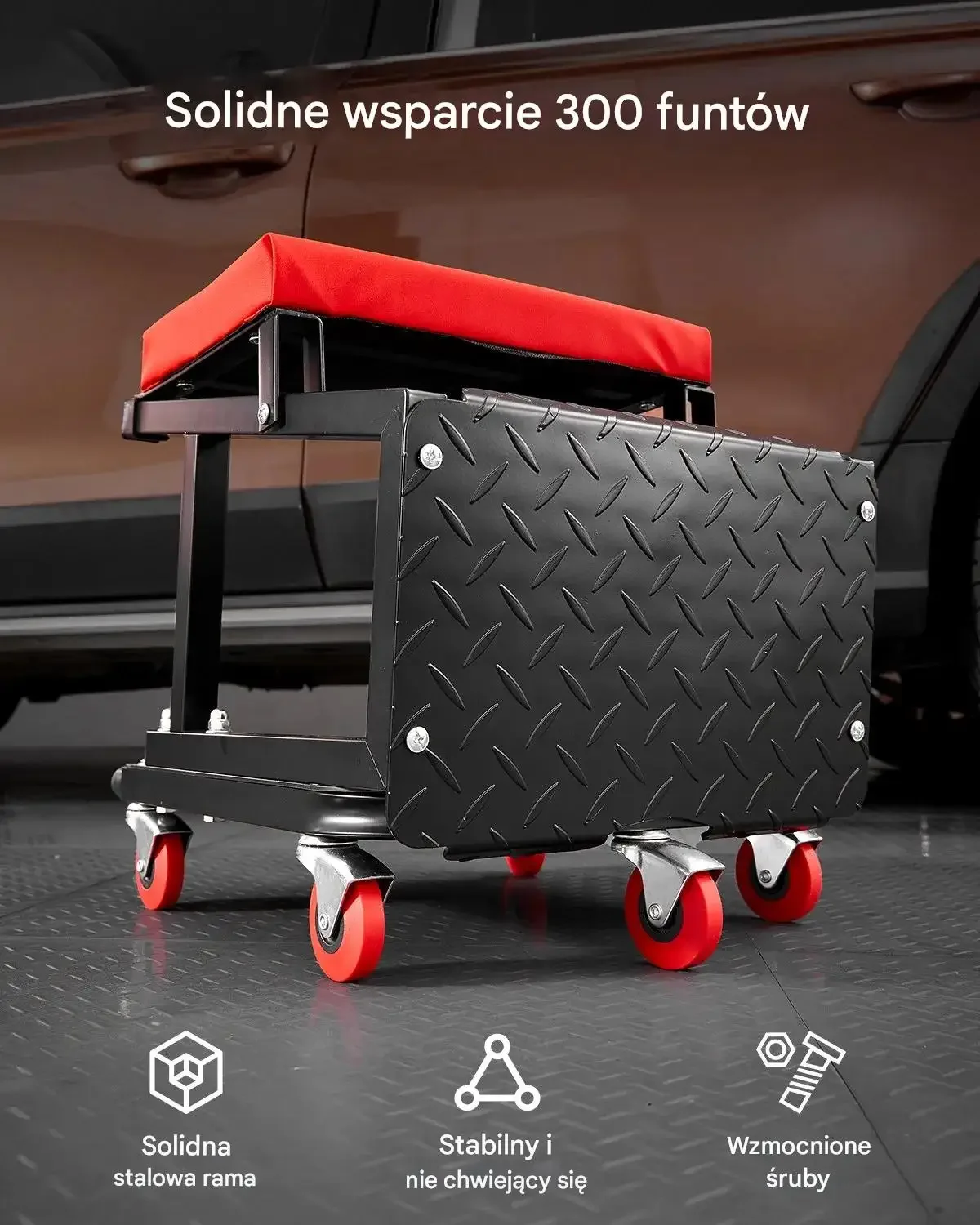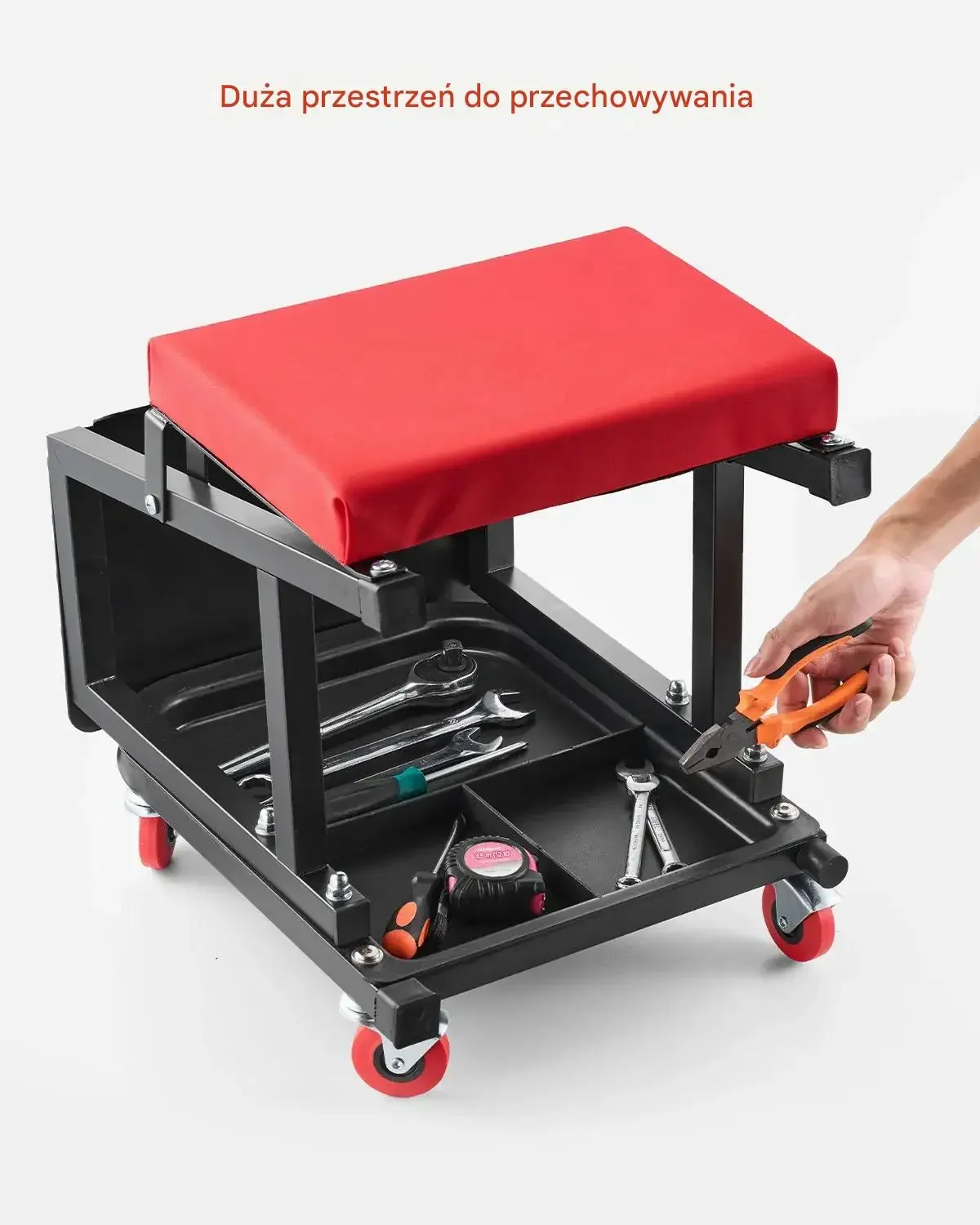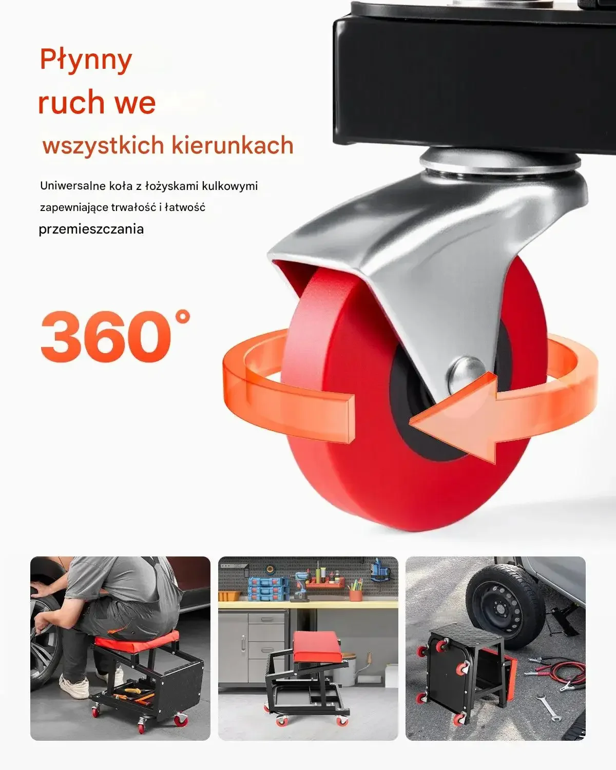 • Czyszczenie i detailing: Mobilne siedzisko ułatwia dokładne prace