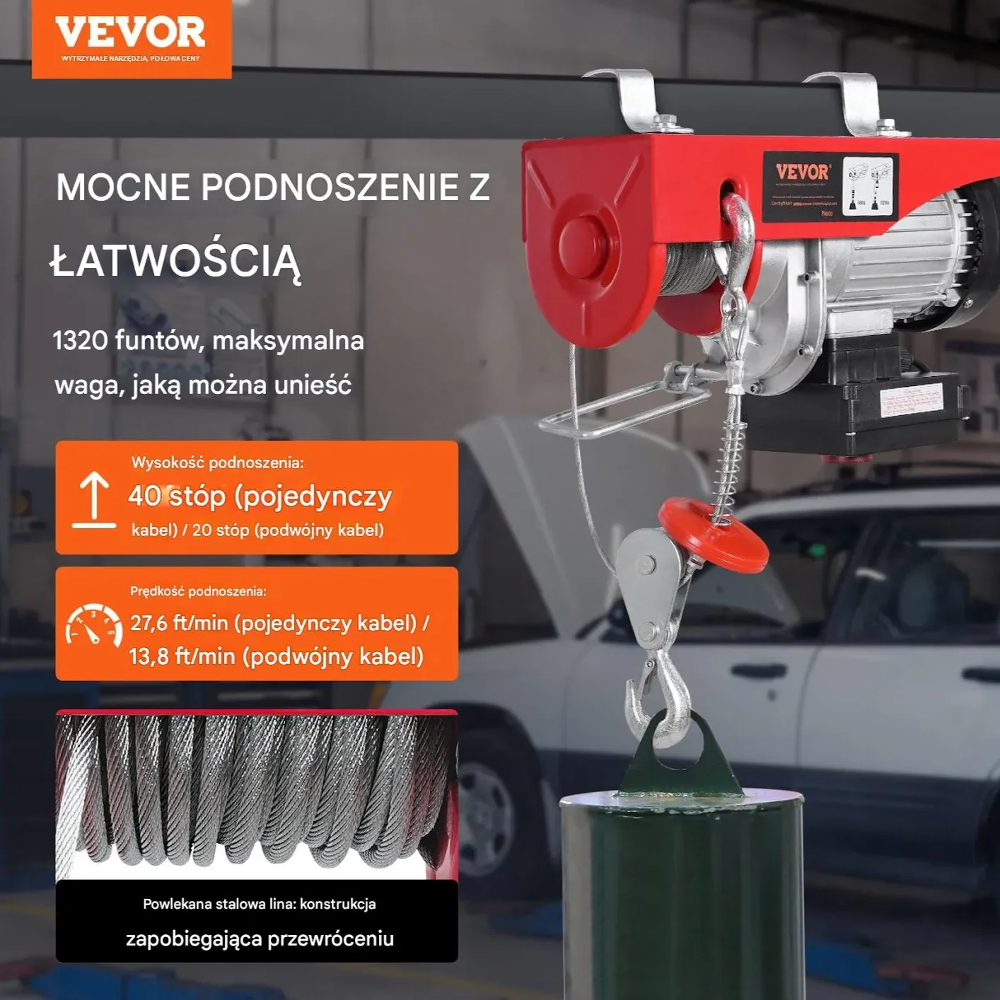 ✔ Mocny silnik 1600 W – wydajne podnoszenie do 1000 kg