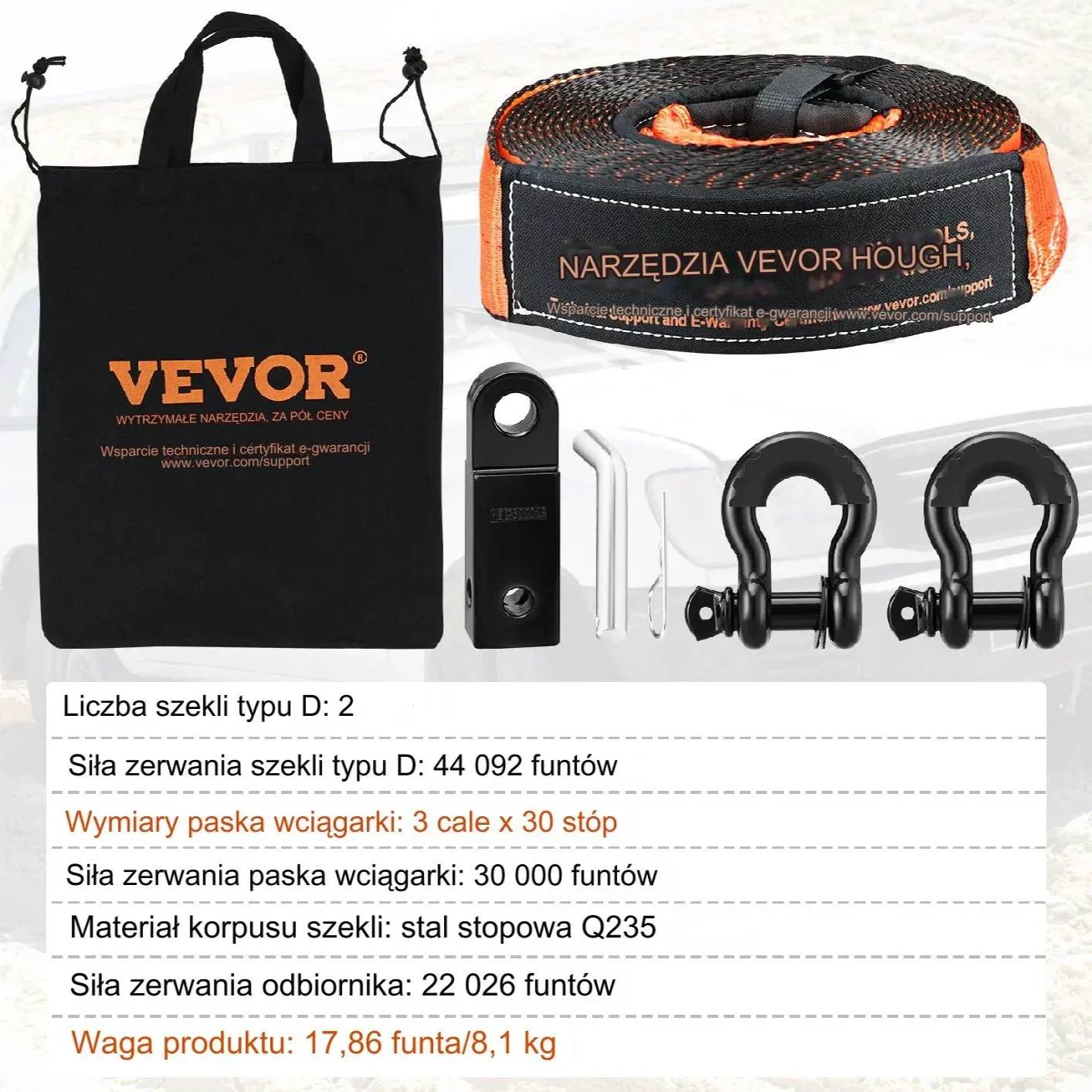 ✔ Solidna stalowa lina – zwiększona odporność na zerwanie