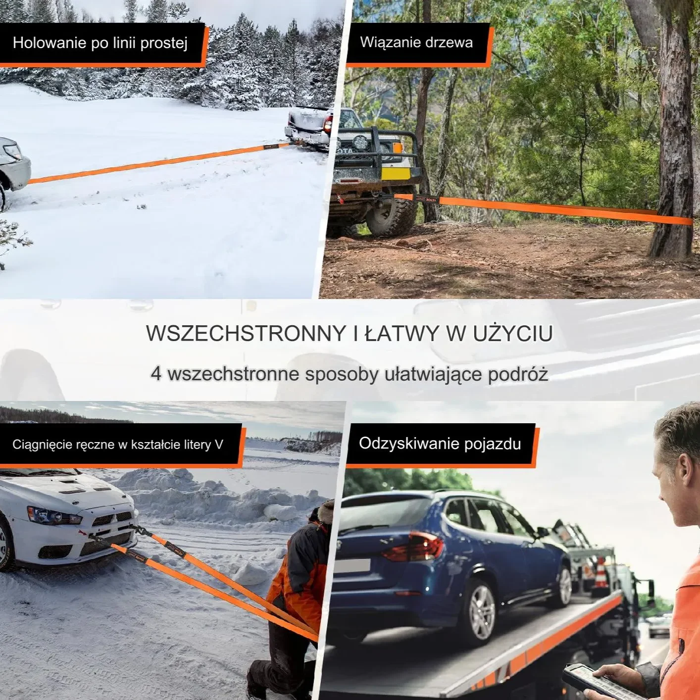 ✅ Ratowanie pojazdów – skuteczny w przypadku utknięcia w błocie, piasku czy śniegu