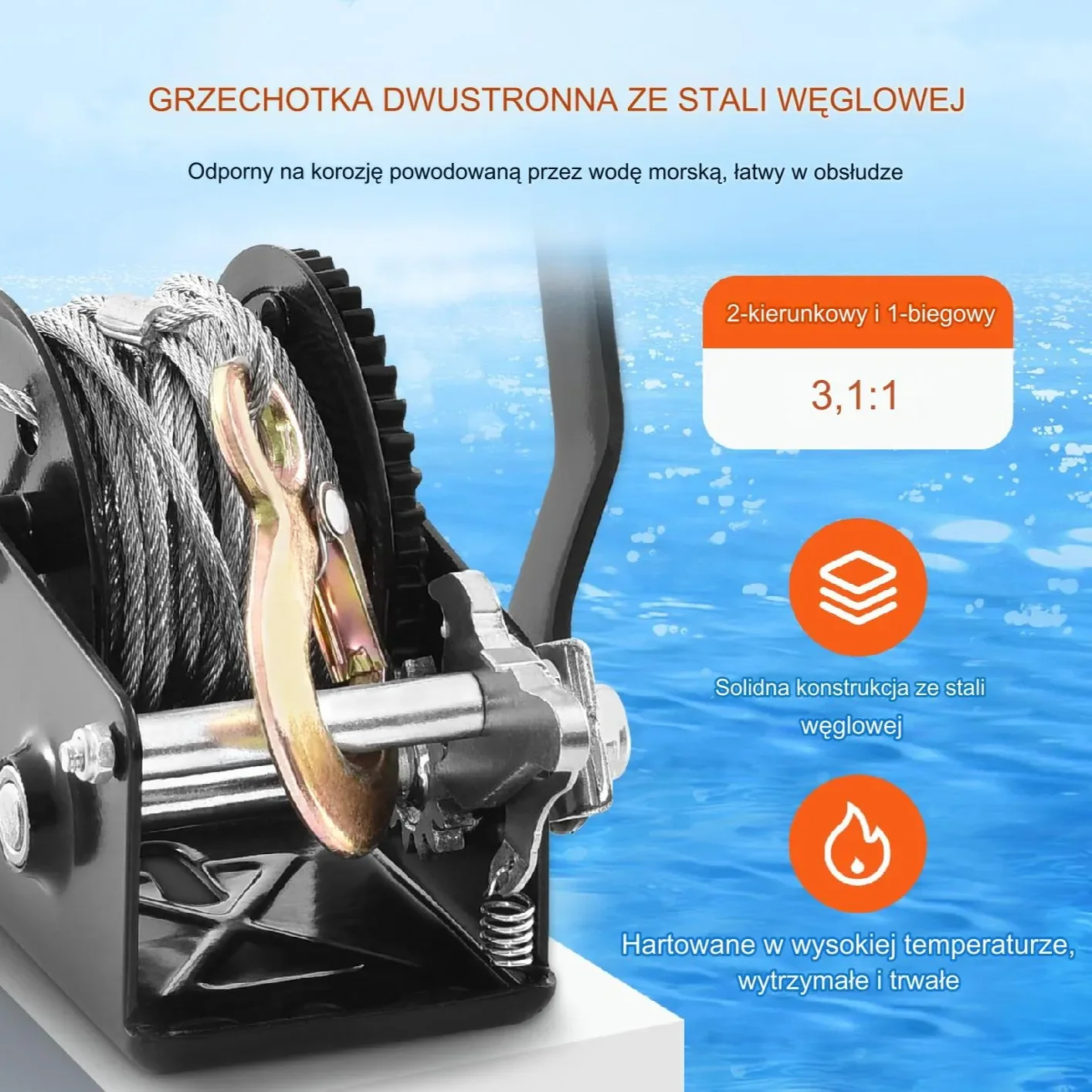 Ręczna Wciągarka 360 kg – Solidna Konstrukcja, Stalowa Lina 10 m