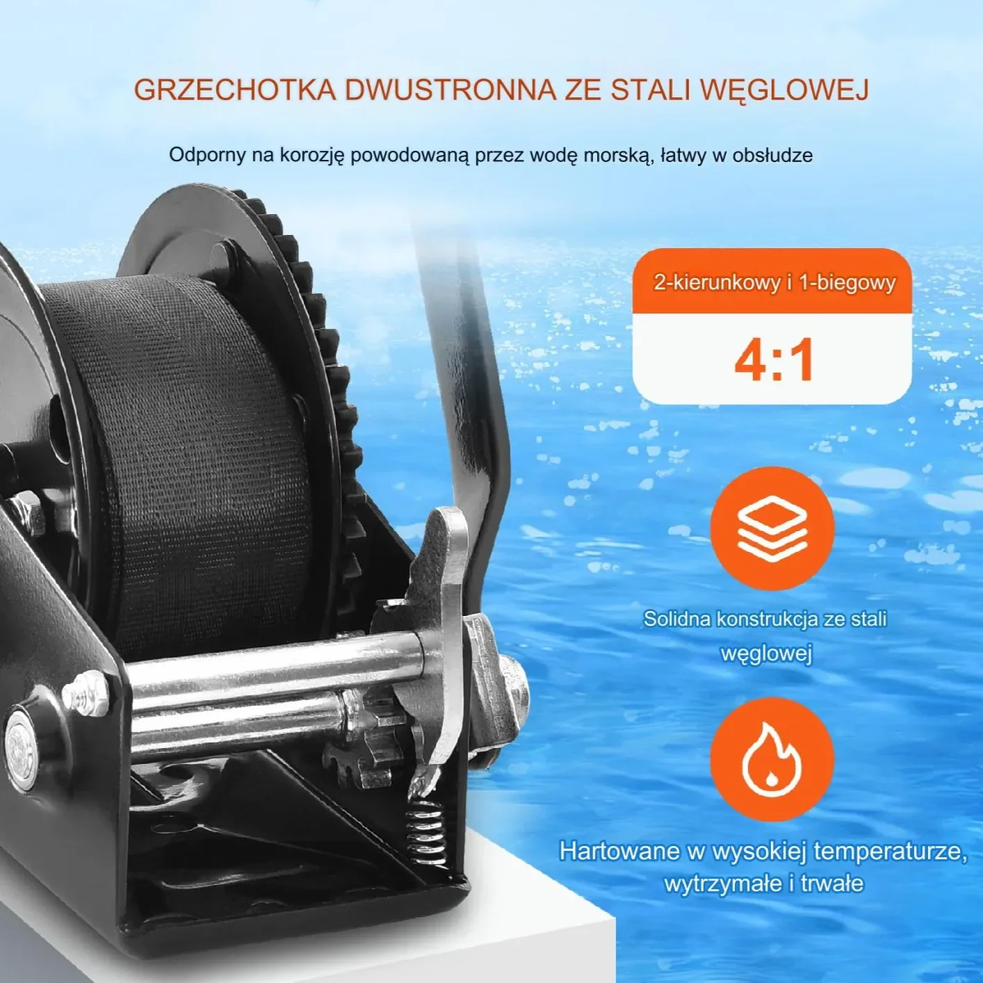 Ręczna Wciągarka 544 kg – Stalowa Lina 10 m, Dwukierunkowy Mechanizm