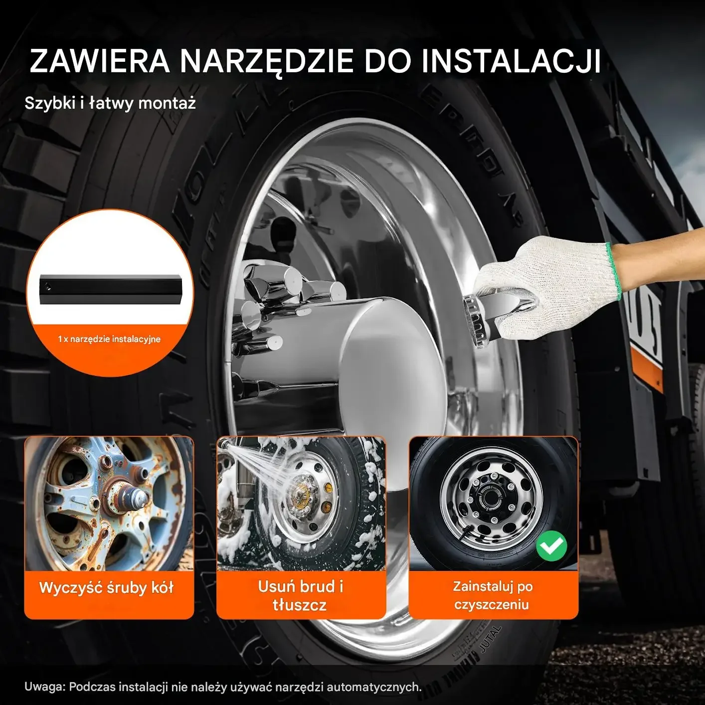 Komplet nakładek na oś ciężarówki – Ochrona i styl dla felg 20″, 22,5″ i 24,5″