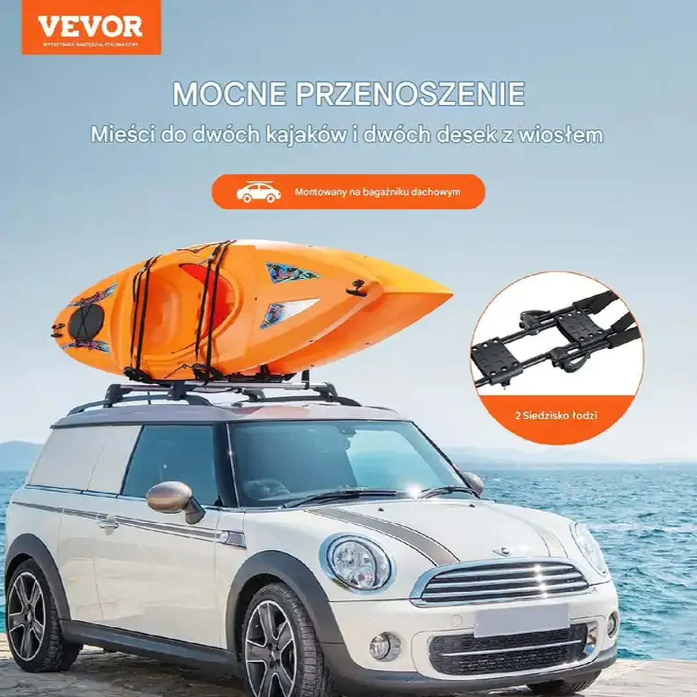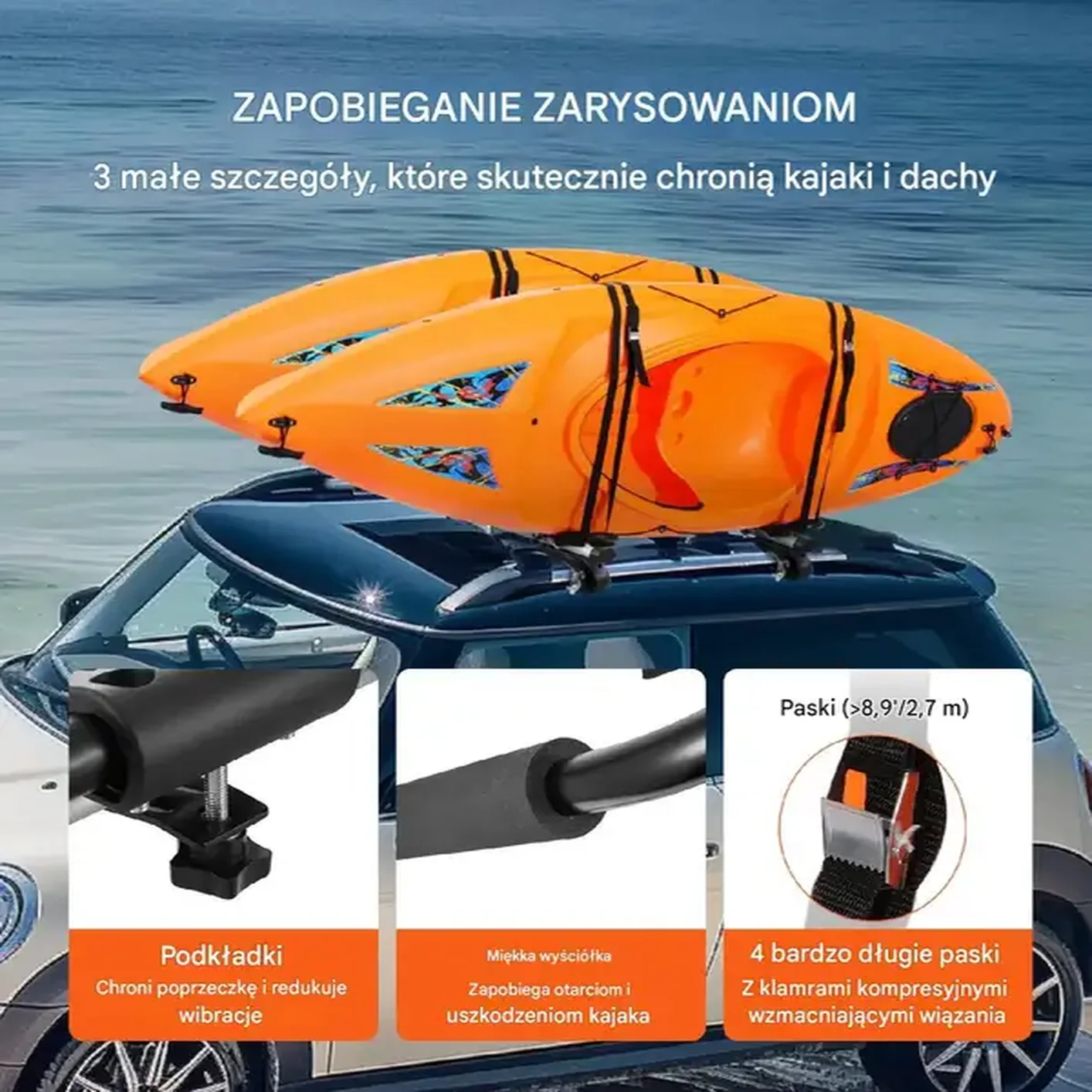 - ✅Stabilne mocowanie – idealne do transportu 2 kajaków lub innego sprzętu sportowego.