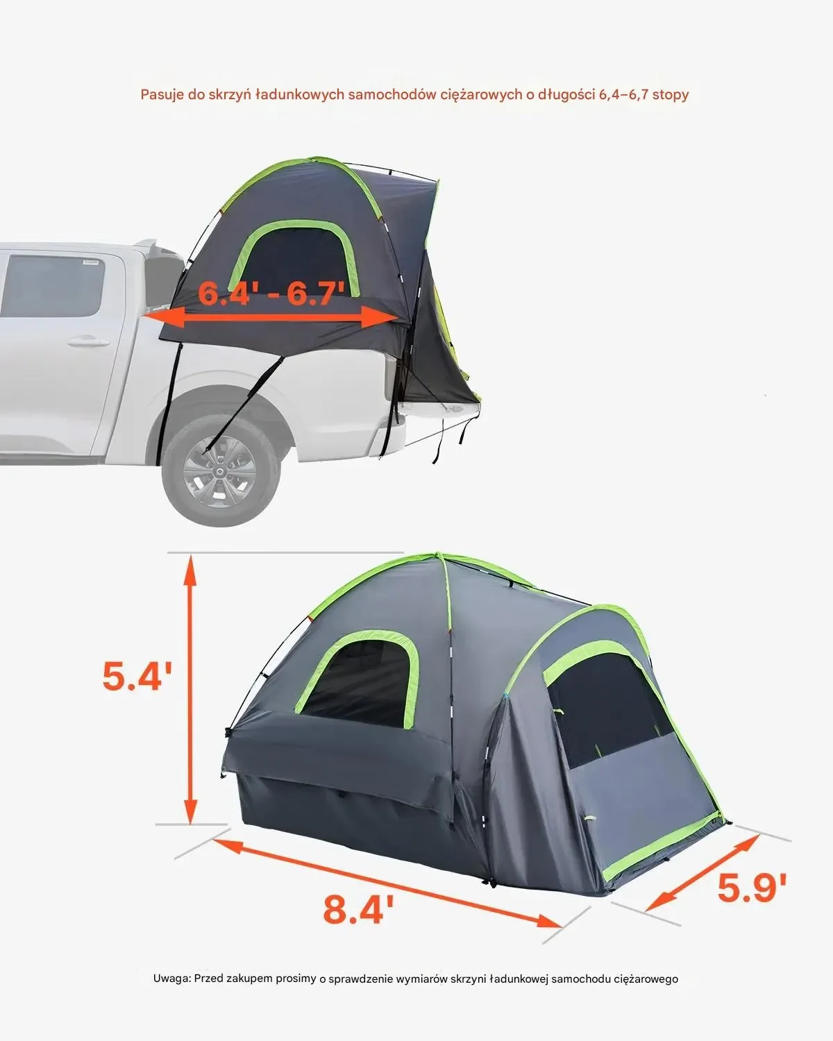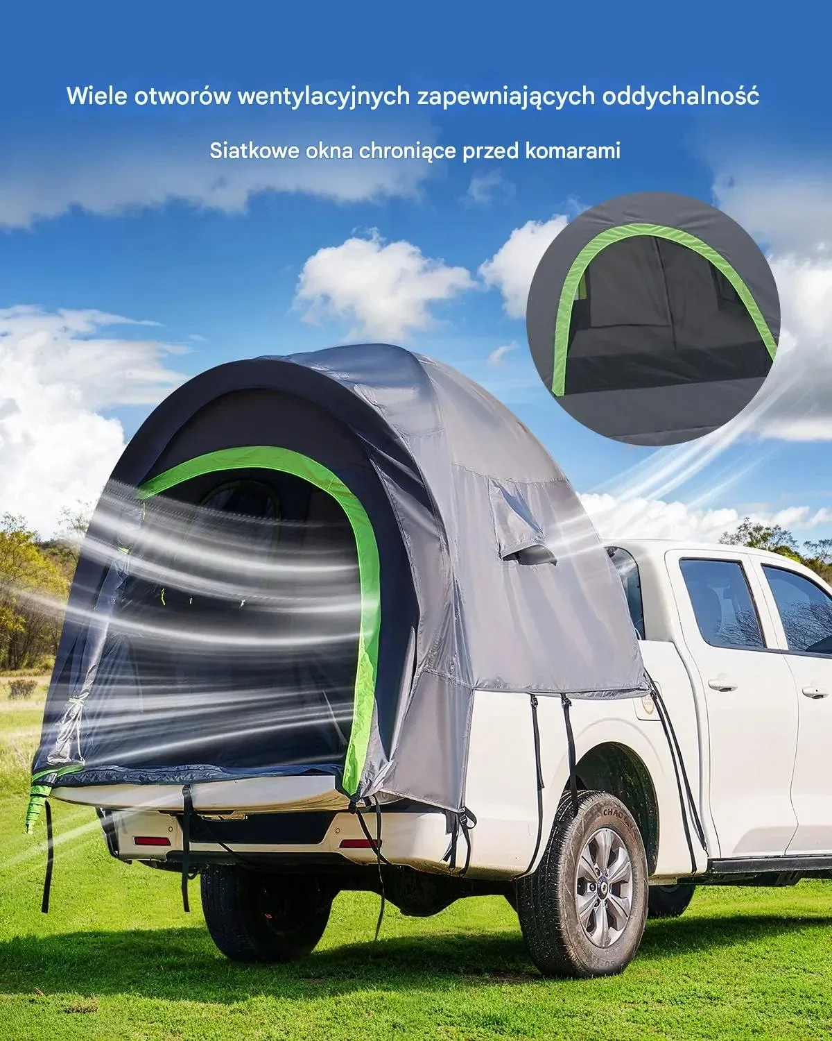 Namiot Samochodowy na Skrzynię Pickupa 255×180 cm – Wodoodporny i Przestronny