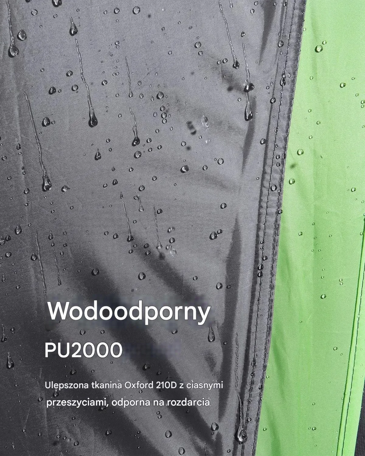 - ✅ Wodoodporność PU2000: Nieprzemakalna konstrukcja nawet podczas ulewy