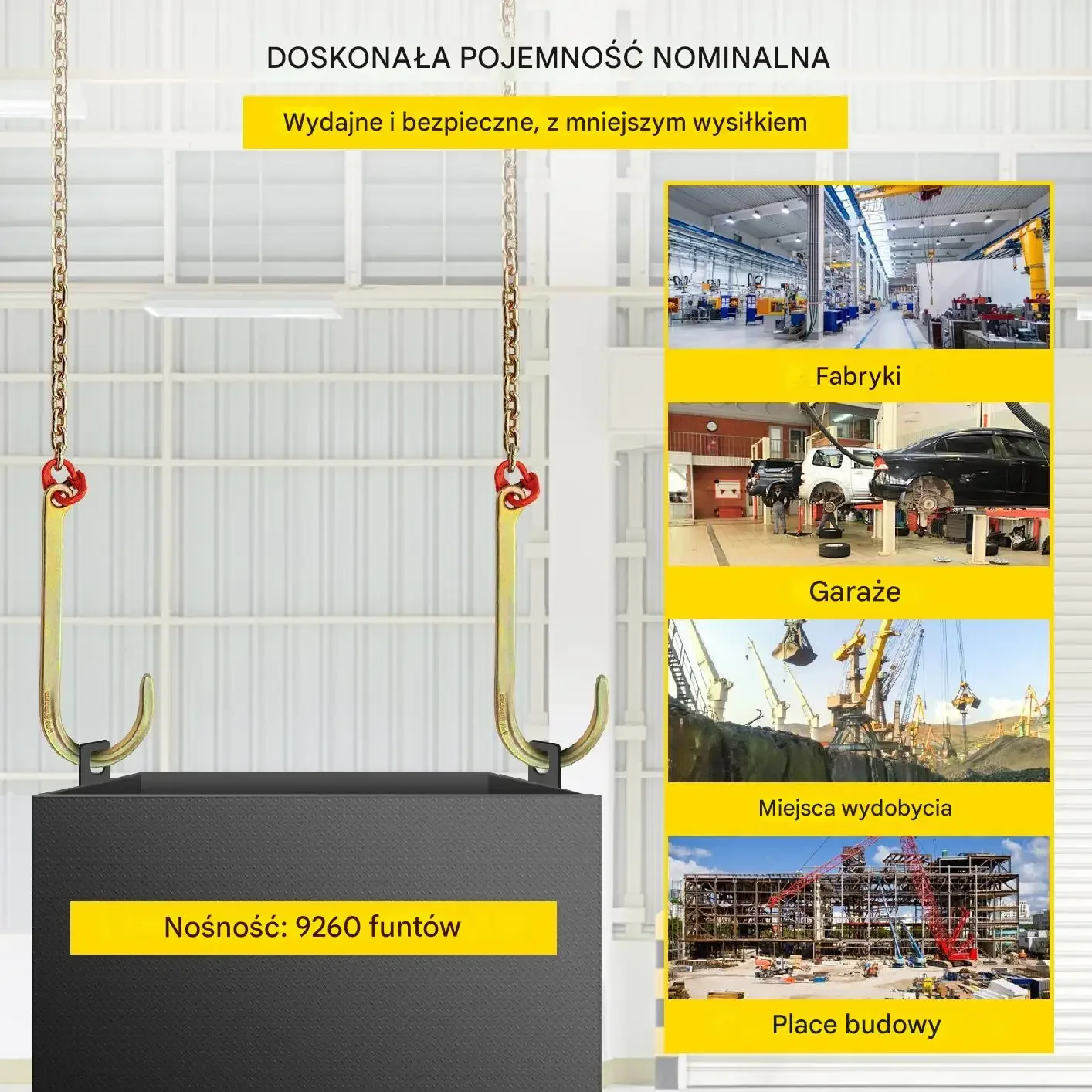 ⭐ Podnoszenie i holowanie ciężkich ładunków: idealne do zastosowań w budownictwie, kopalniach, portach i fabrykach