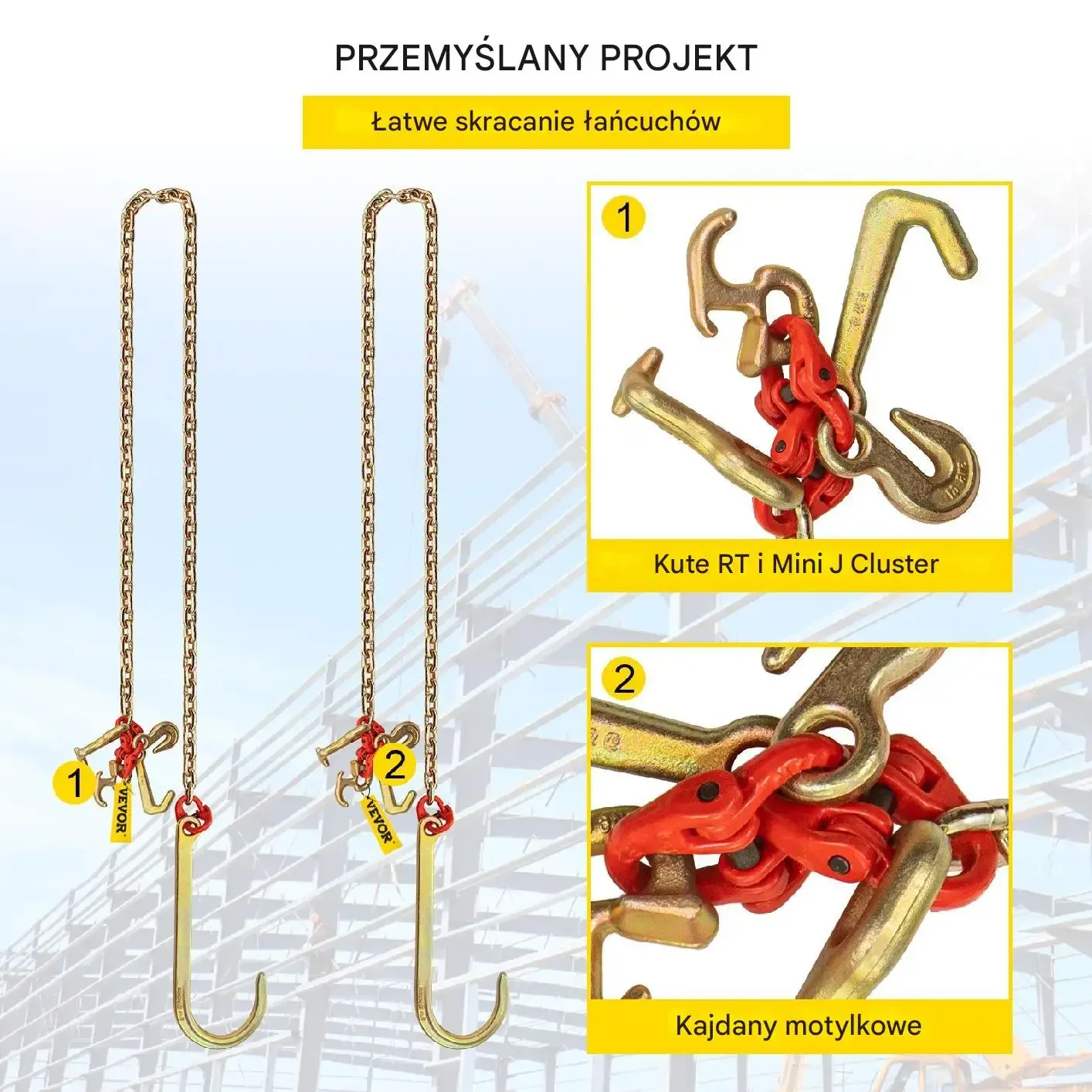 - 2 × zawiesie łańcuchowe z hakiem J