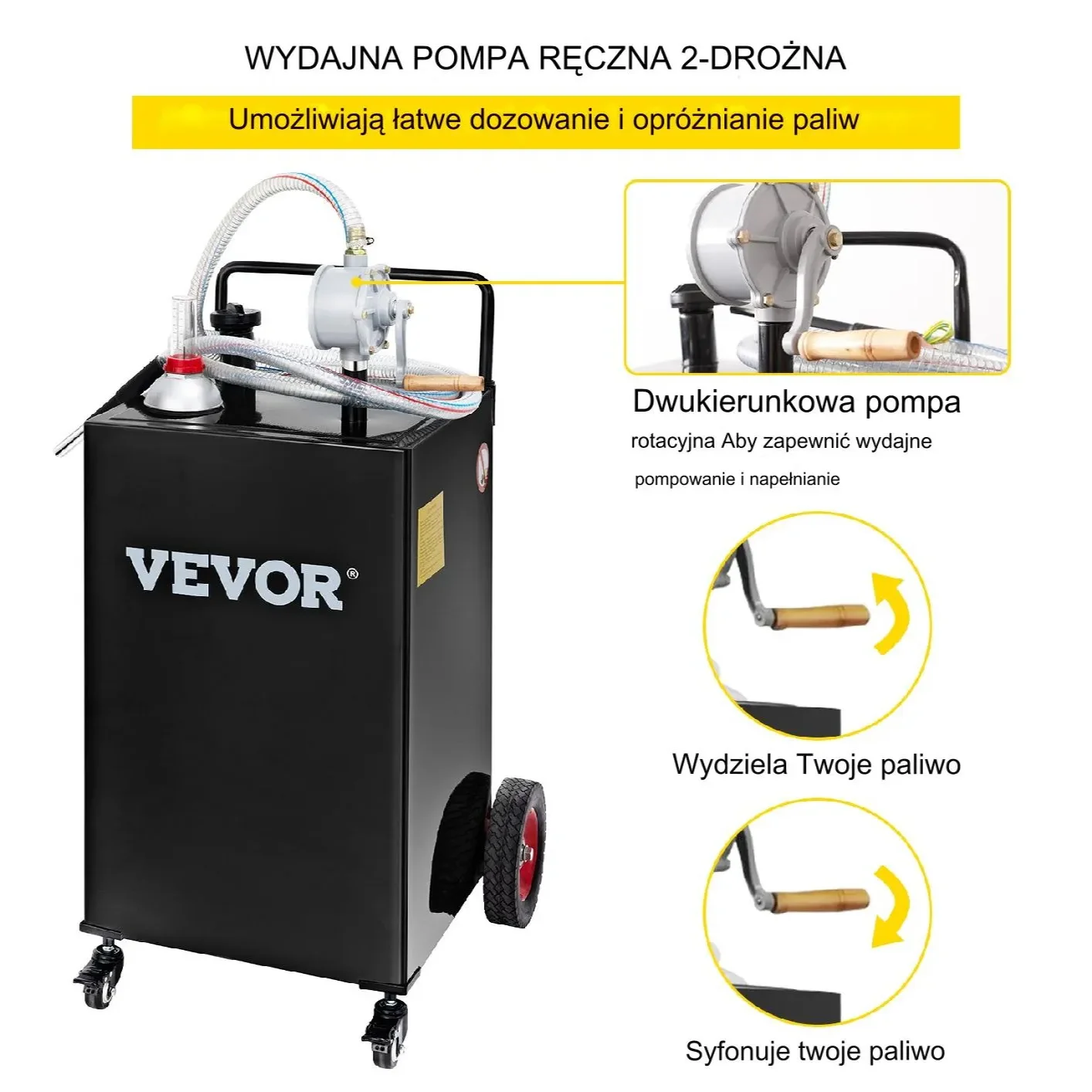 Dwukierunkowa ręczna pompa obrotowa pozwala z łatwością dozować lub zasypywać paliwo, dzięki czemu pompowanie i uzupełnianie jest wydajne dzięki odwróceniu kierunku obrotów korby. Możesz szybciej napełniać zbiorniki gazu bez wysiłku, bezpiecznie przelewając paliwo.
