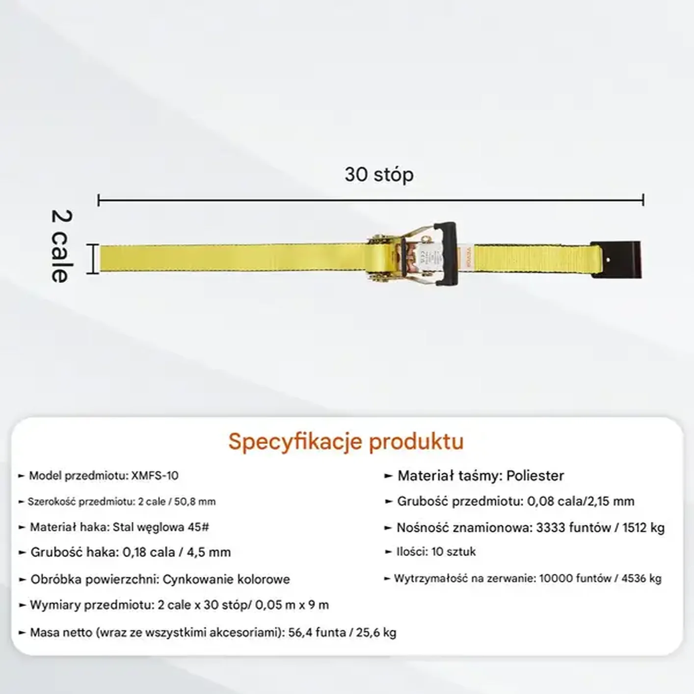 - 10x Pas transportowy z napinaczem (9 m, 4,5 T)