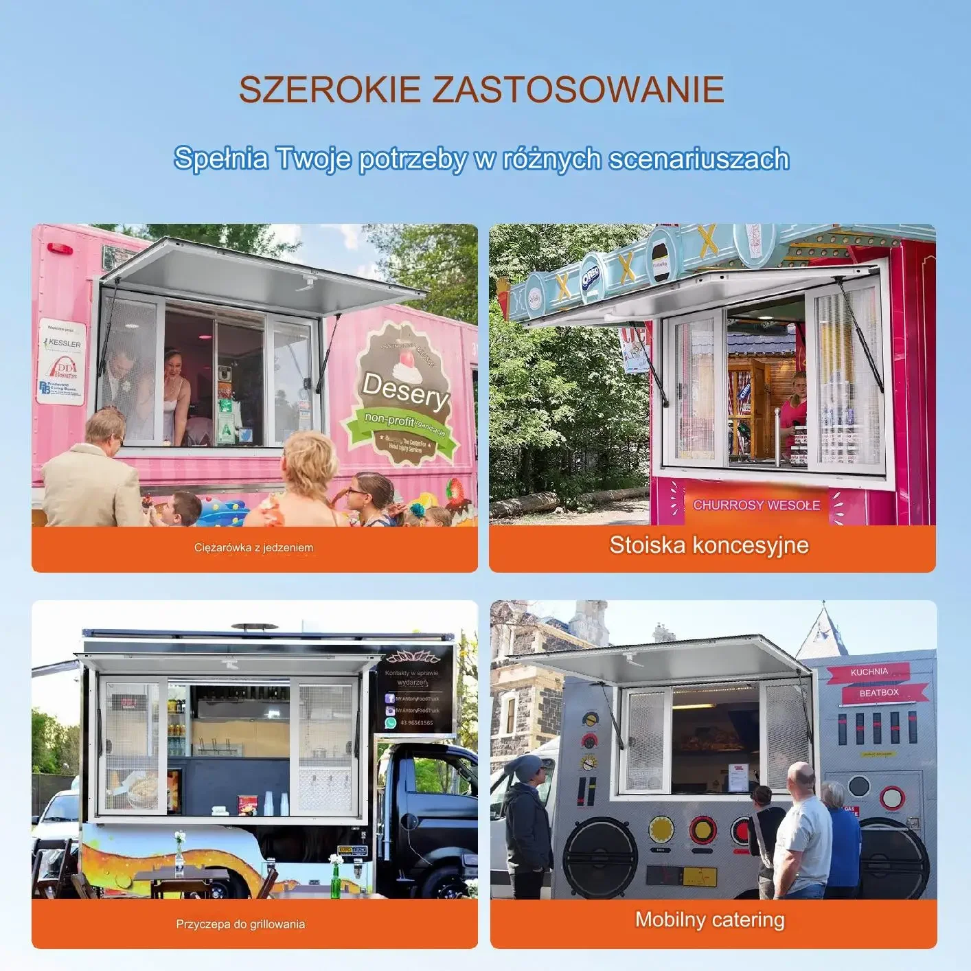 Okna spełniają różne potrzeby w wielu scenariuszach, takich jak ciężarówki z jedzeniem, stoiska i mobilny catering.
