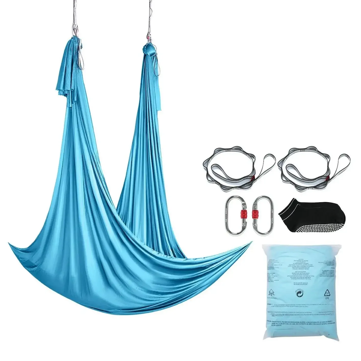 Hamak aerial yoga 5m z osprzętem 100gsm nylon do treningu niebieski