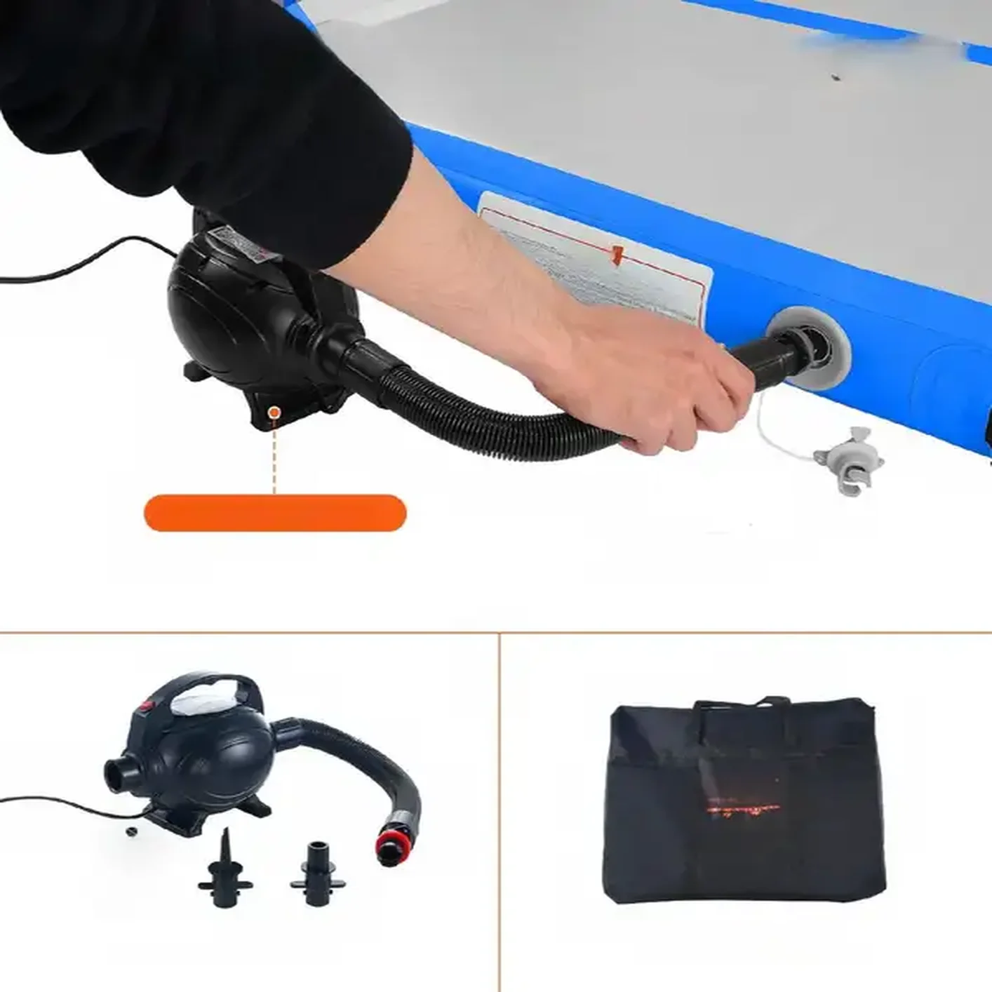 Mata treningowa wyposażona jest w elektryczną pompę powietrza o mocy 600 W, trzy dysze i wąż. Maksymalne ciśnienie wynosi 0.22 bar, co pozwala na napompowanie lub spuszczenie powietrza w zaledwie 1 minutę. Mata utrzymuje ciśnienie przez kilka dni.