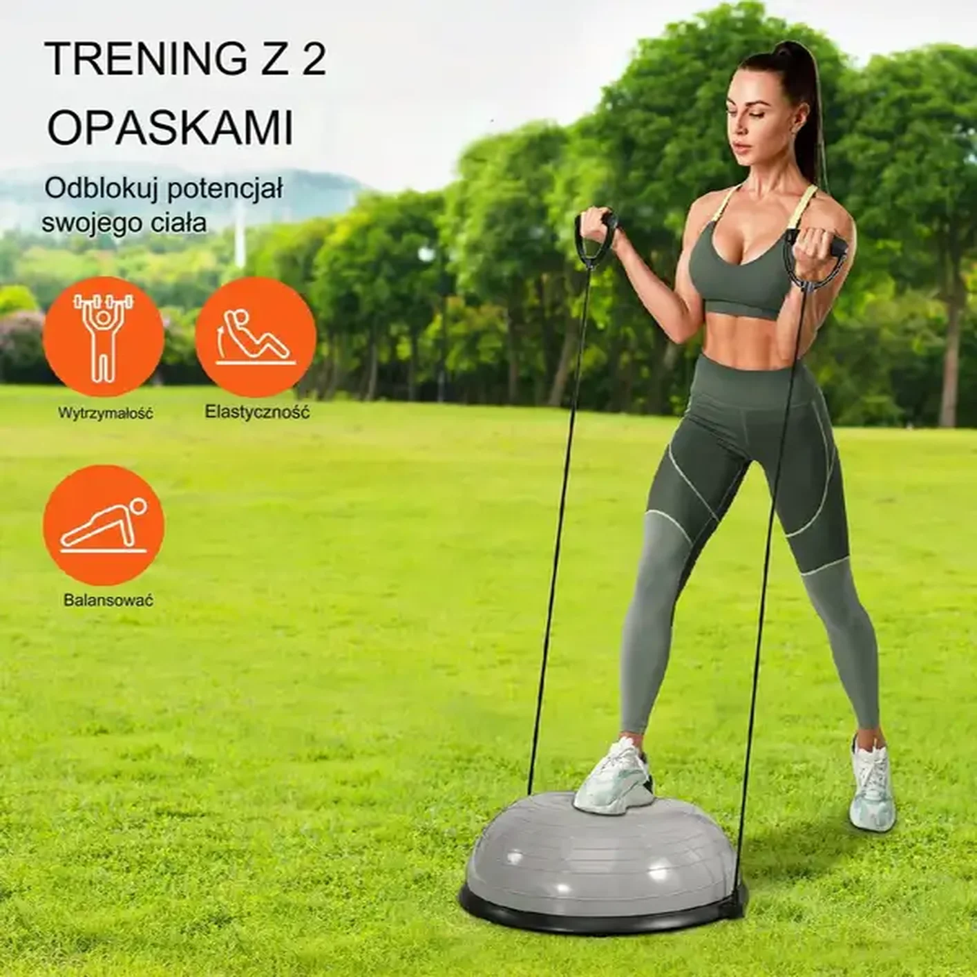 - Typ: Półkula treningowa z taśmami oporowymi