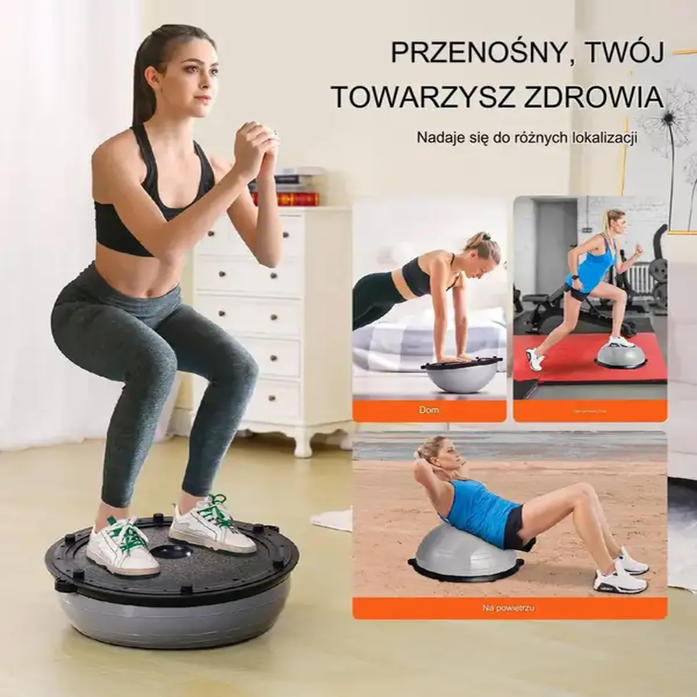 Poznaj wszechstronny przyrząd do ćwiczeń! Ta piłka o średnicy 58 cm łączy cechy piłki do ćwiczeń i platformy stabilizacyjnej, oferując szeroki zakres możliwości treningowych. Wytrzymała konstrukcja o maksymalnym obciążeniu do 300 kg, w zestawie z linkami oporowymi i pompką nożną, czyni ją idealnym wyborem do treningu całego ciała w domu i na siłowni.