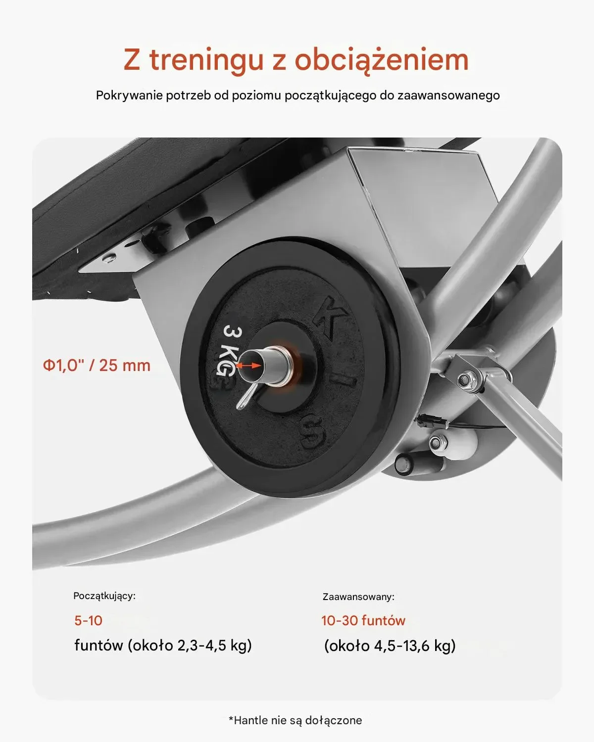 - ✅ Regulowana intensywność treningu: Możliwość dodania obciążenia (talerzy o średnicy 2,5 cm) pozwala stopniowo zwiększać intensywność, dostosowując maszynę do poziomu od początkującego do zaawansowanego.