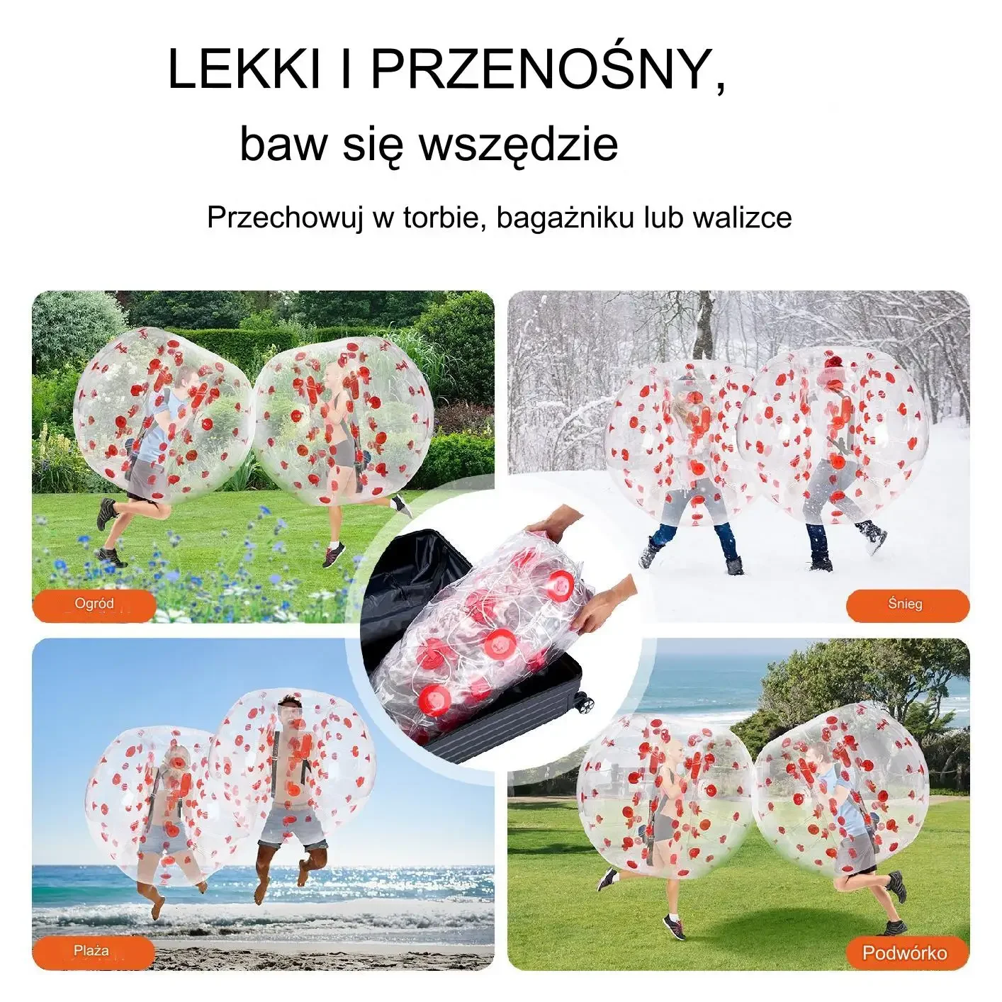 - ✅ Łatwość transportu: po spuszczeniu powietrza kula mieści się w plecaku