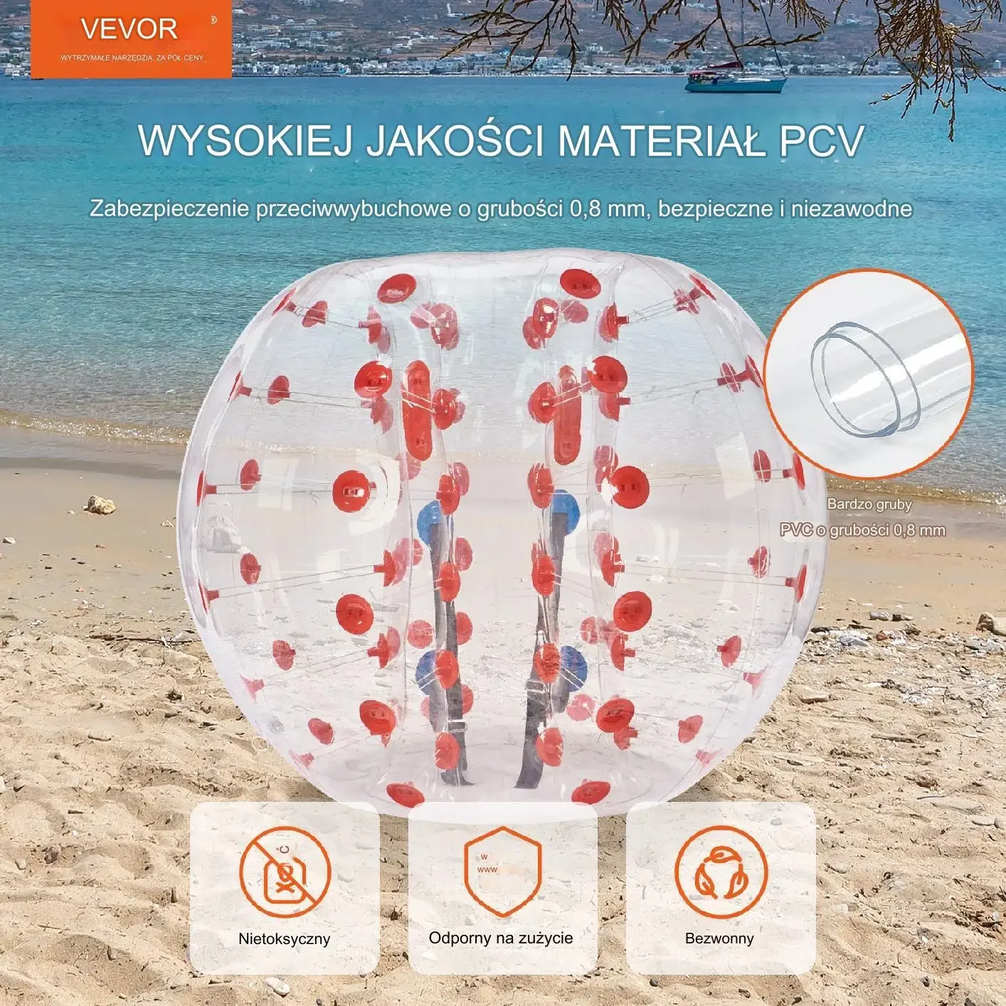 - ✅ Trwałe tworzywo PVC: grubość 0,8 mm – odporne na uszkodzenia i wielokrotne użytkowanie