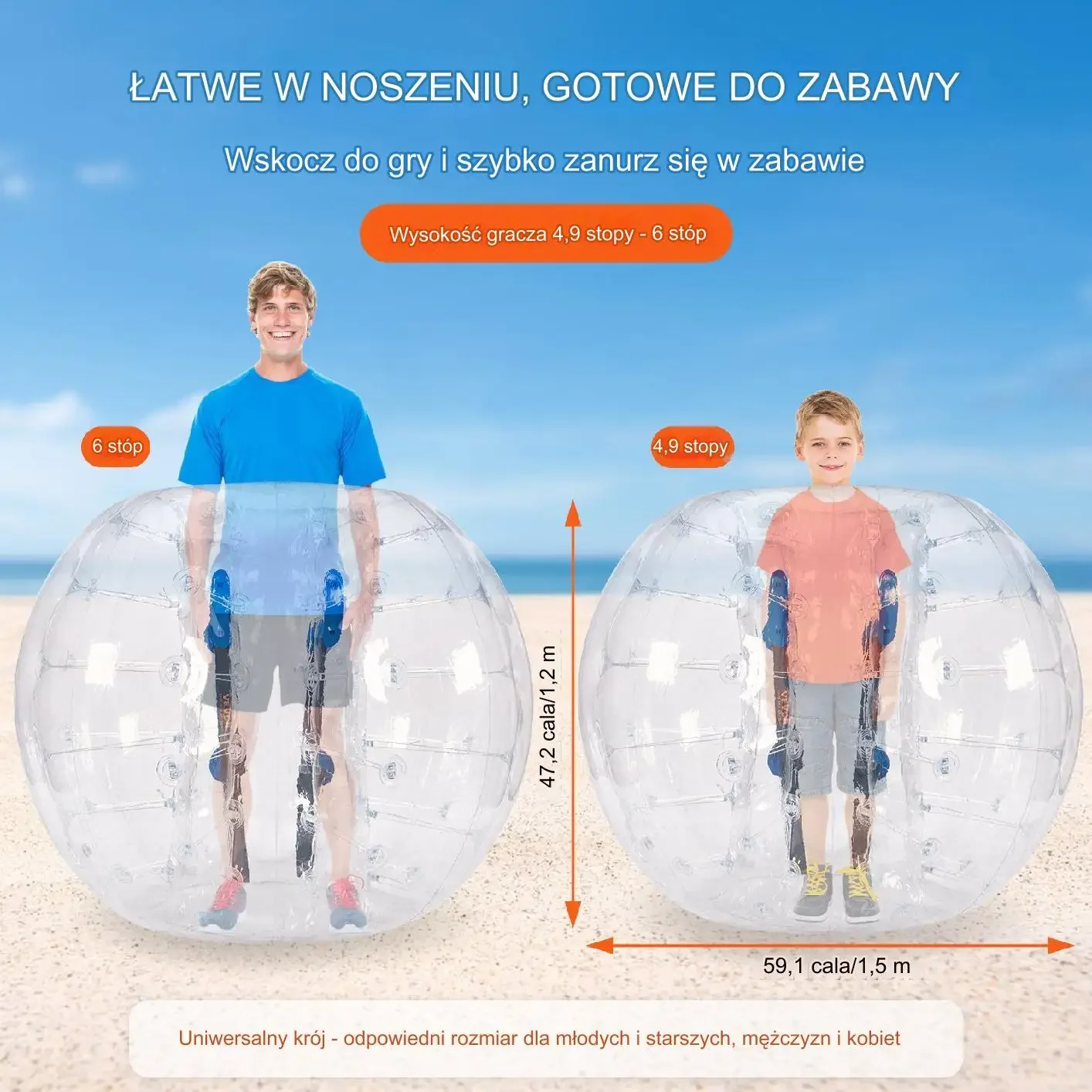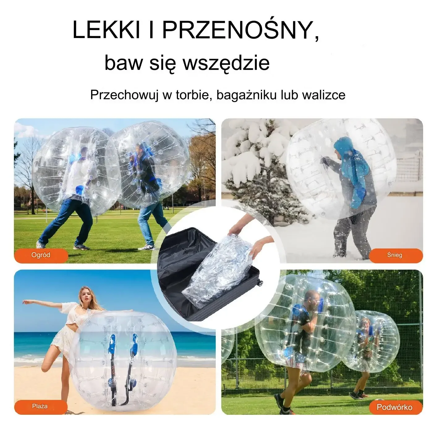 Szalone zderzenia, salwy śmiechu i niesamowita dawka ruchu – nadmuchiwana kula powietrzna 1,5 m to hit każdej aktywnej imprezy plenerowej! Została zaprojektowana z myślą o rozgrywkach zespołowych, które łączą rywalizację z maksymalnym bezpieczeństwem. Dzięki przezroczystemu materiałowi PVC użytkownicy mają doskonałą widoczność, a regulowane pasy i solidne uchwyty dbają o pełną stabilizację podczas gry. Znakomity wybór na pikniki, eventy sportowe czy zabawy w ogrodzie.