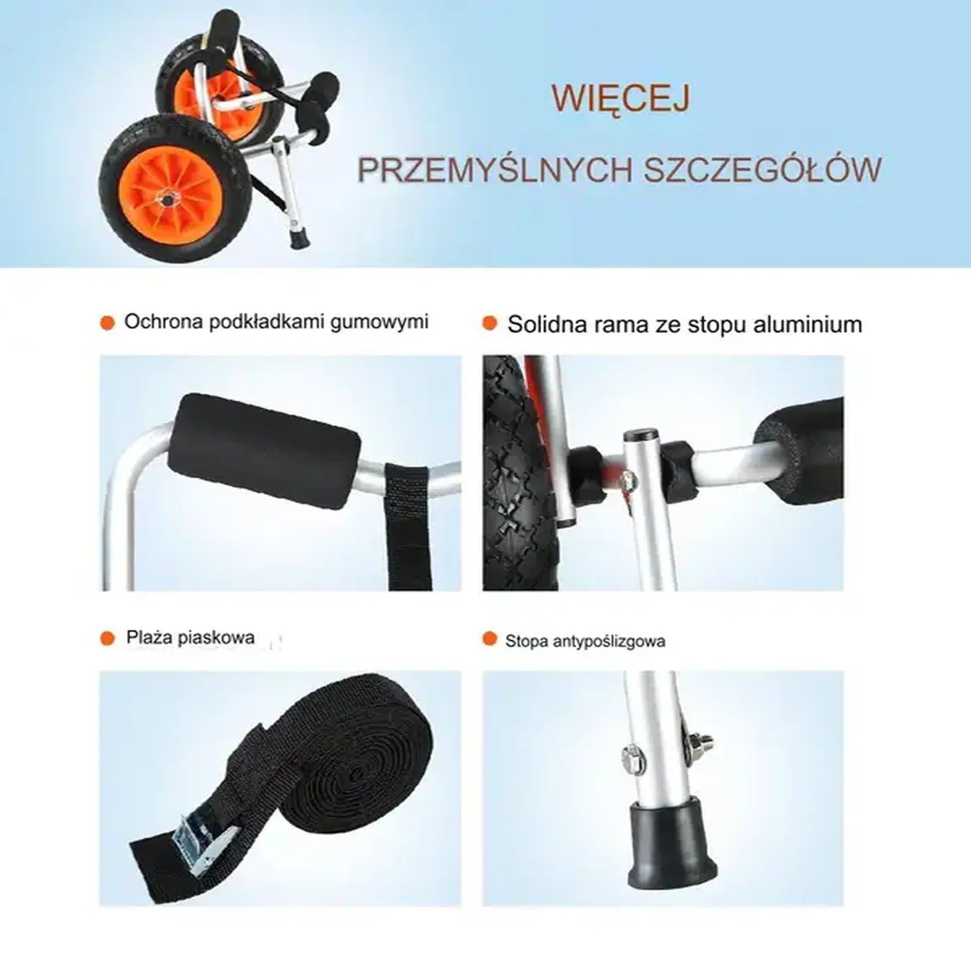 - ⭐ Ułatwienie przemieszczania sprzętu po plaży, trawie, żwirze i innych nierównych terenach