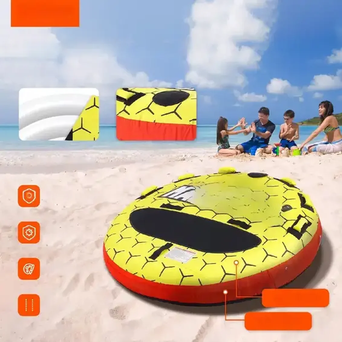 Przygotuj się na niezapomniane chwile pełne adrenaliny i śmiechu na wodzie! To solidne, 3-osobowe koło do holowania to idealny wybór dla rodzin, przyjaciół i wszystkich, którzy szukają ekscytującej rozrywki. Dzięki wyjątkowej trwałości, komfortowi i łatwości użytkowania, każda przejażdżka będzie czystą przyjemnością. Zanurz się w wodnej przygodzie!