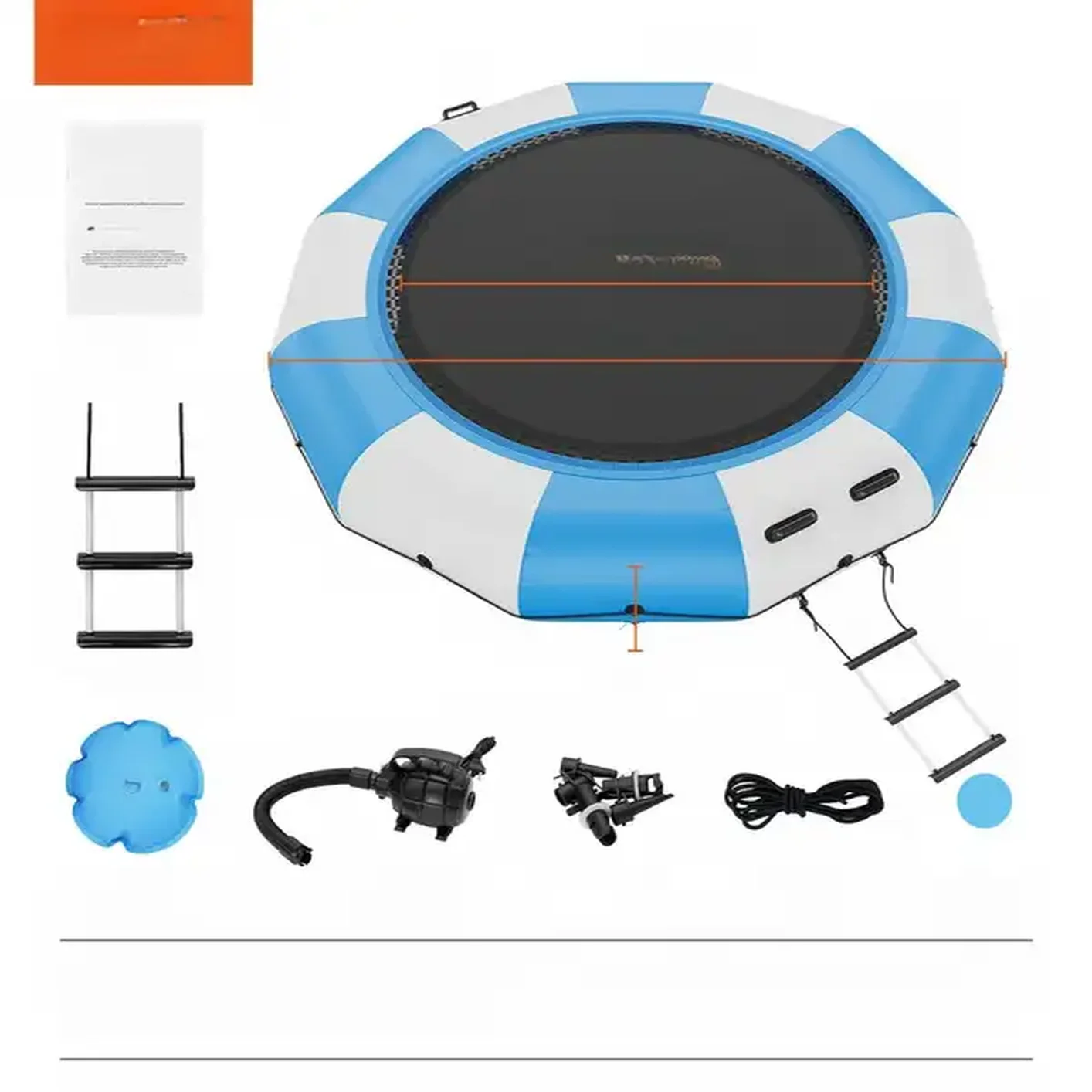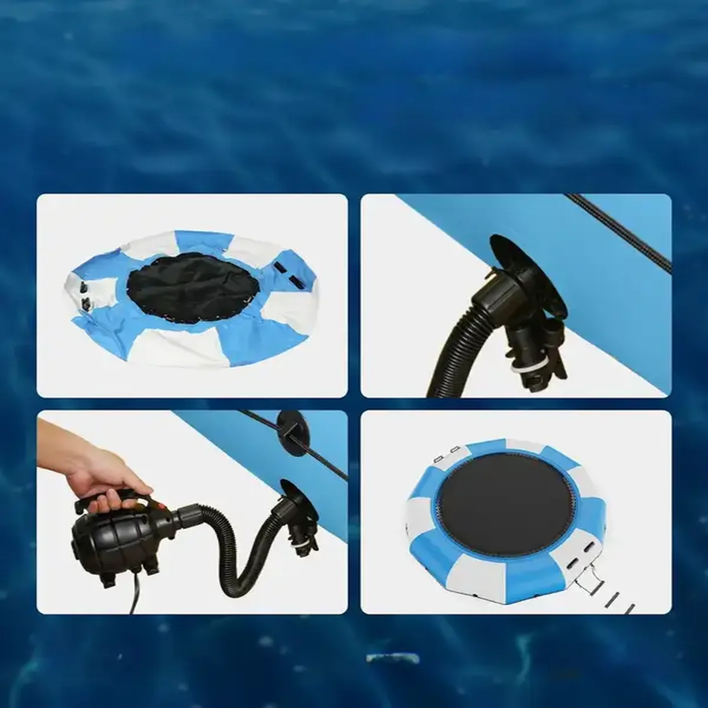 Start / Sklep / Sport i turystyka / Turystyka / Akcesoria / Pompki / Dmuchana trampolina wodna + pompka elektryczna 415 cm niebieska